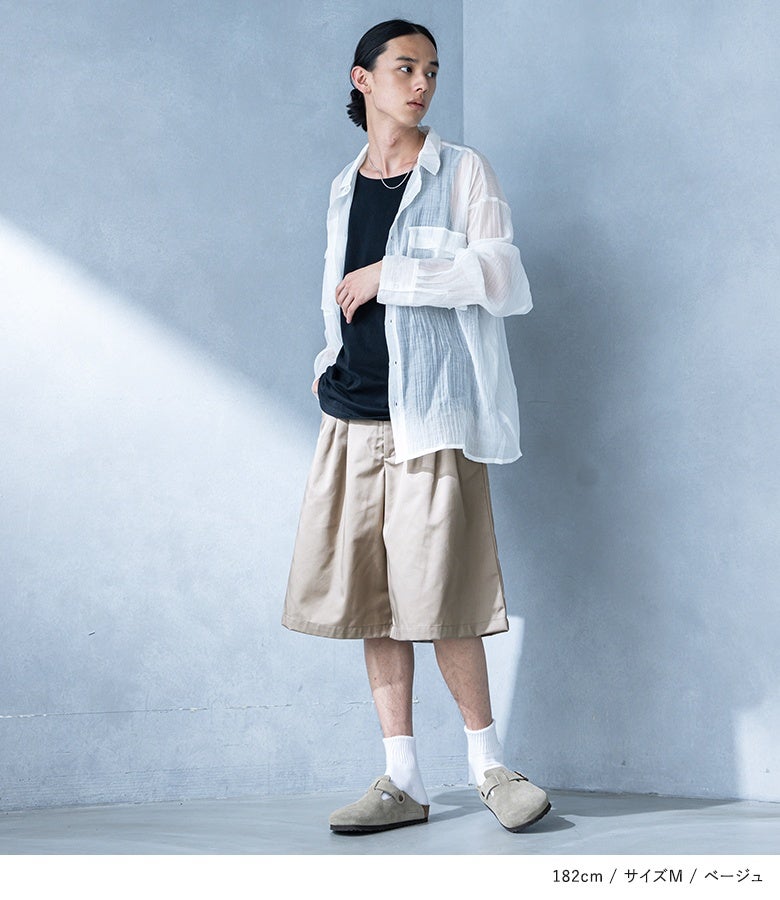 【普段着用】 Tops: L Bottoms: L/LL | 【M】 着丈(ウエスト穿き):ひざ下5cm位 ウエスト:ややゆったり ヒップ:ややゆったり 太もも周り:ゆったり 全体:ゆったり