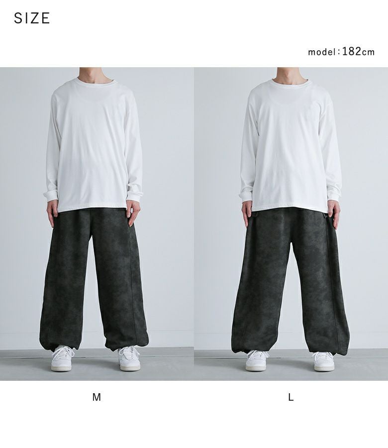 【普段着用】 Tops: S/M Bottoms: S/M | 【M】 着丈(ウエスト穿き):かかとから10cm余る位 ウエスト:ややゆったり ヒップ:ゆったり 太もも周り:ゆったり 全体:ゆったり