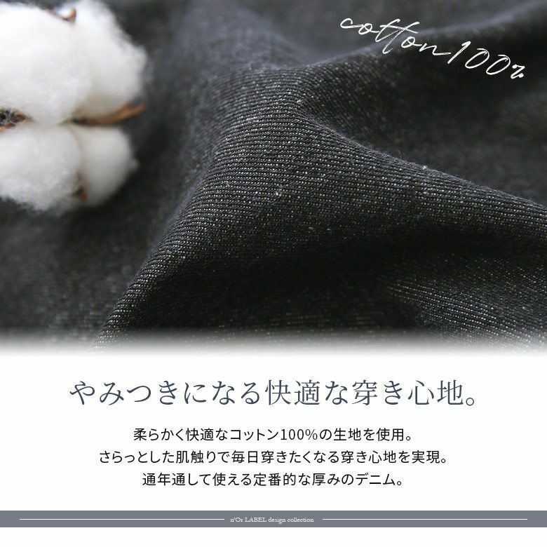 年中通して穿ける程よい厚みのコットン100%のデニム生地は、さらっとした肌触りで快適な穿き心地を実現。お好みで選べる3サイズ展開も魅力的です。