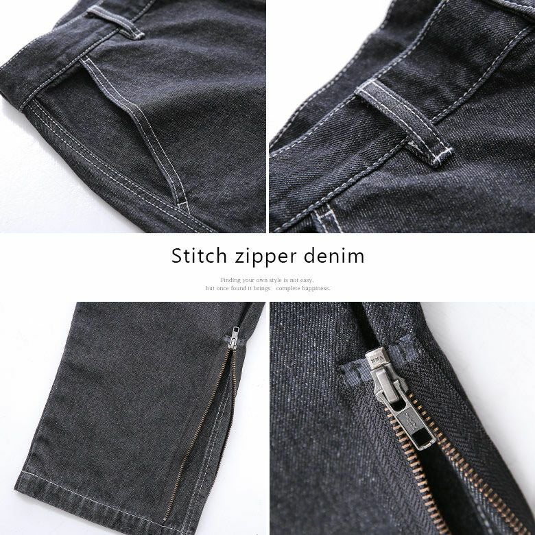 『n'OrLABEL配色ステッチジッパーデザインデニム』