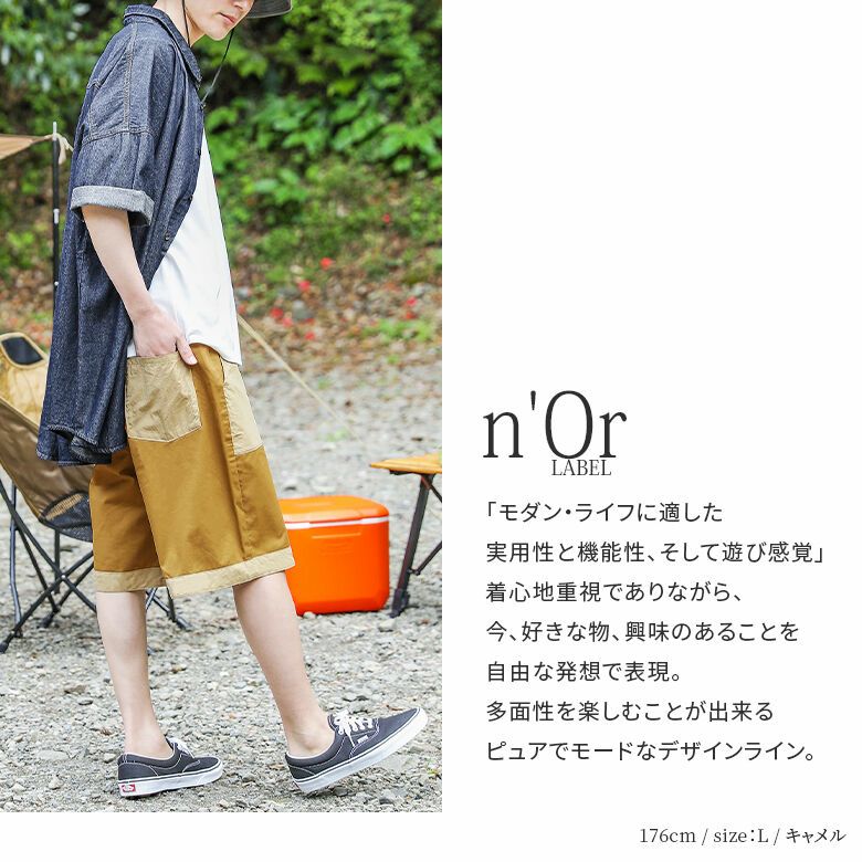 ≪n'OrLABEL≫配色異素材ハーフパンツです。