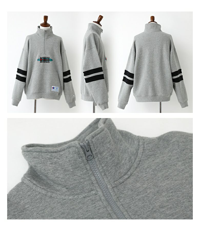 他の画像を見る 選べる2サイズ展開!古着のような風合いの刺繍をあしらった、裏起毛トップス。 【送料無料】『Champion袖ラインロゴ刺繍ハーフジップトップス』【メール便不可】【40】 ¥ 15,180 税込 (0)