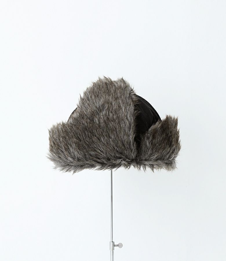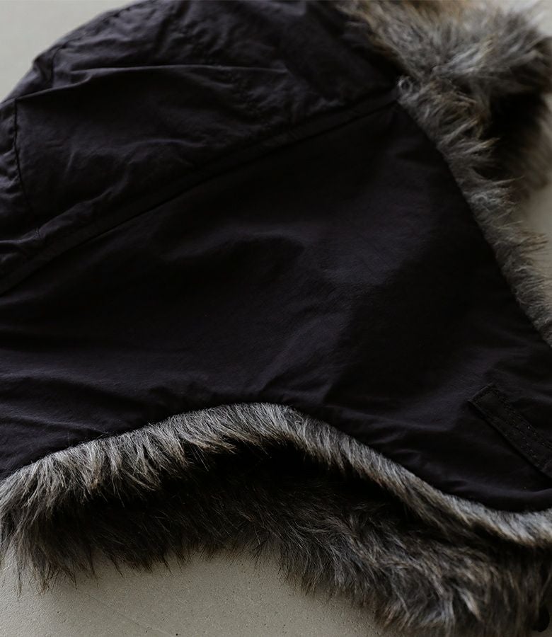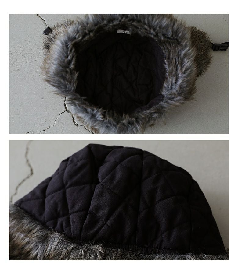 パイロットが操縦する時に着用していたデザインを用いた、ファーの耳当てとつばがポイントのフライトキャップ。しっかりとしたエコファー素材が目を惹きます。