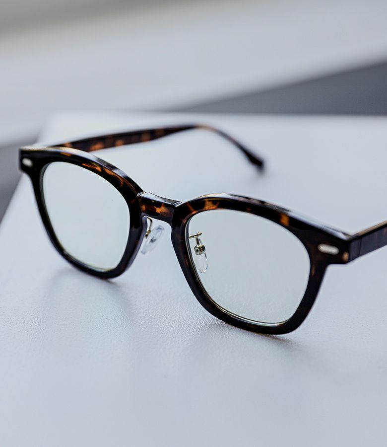 紫外線を受けるとレンズの色が濃くなる調光仕様のサングラス。