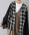 巻き方ひとつで雰囲気変わる≪kOhAKU≫異素材チェックフリンジストールです。