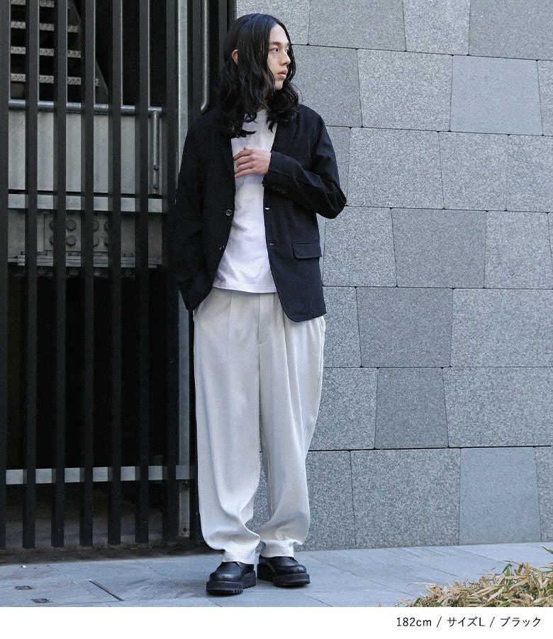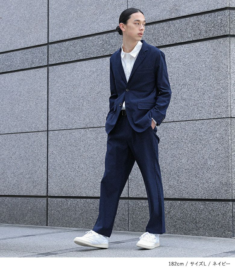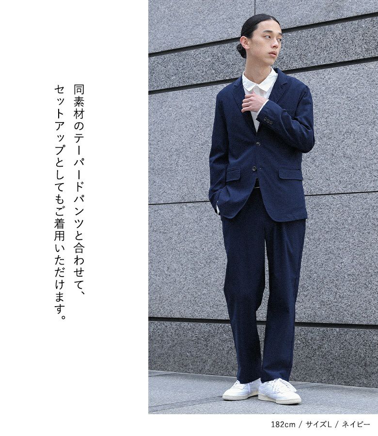 カジュアルなアイテムと合わせてもカジュアルすぎない着こなしが叶います。同シリーズのテーラードパンツと合わせていただくと、スッキリとした上品な印象に。
