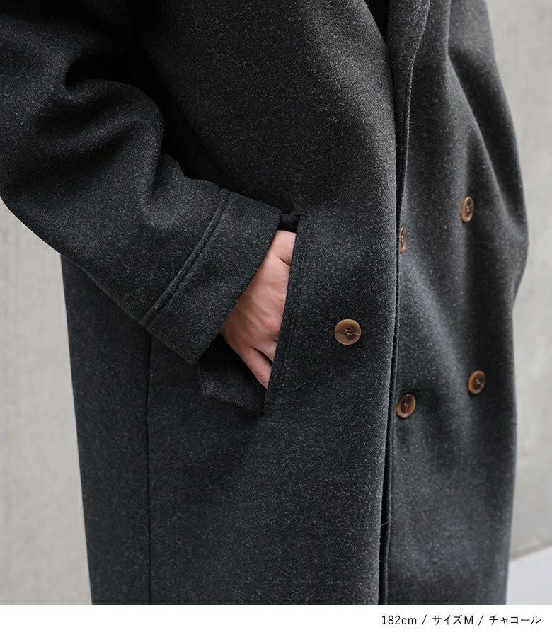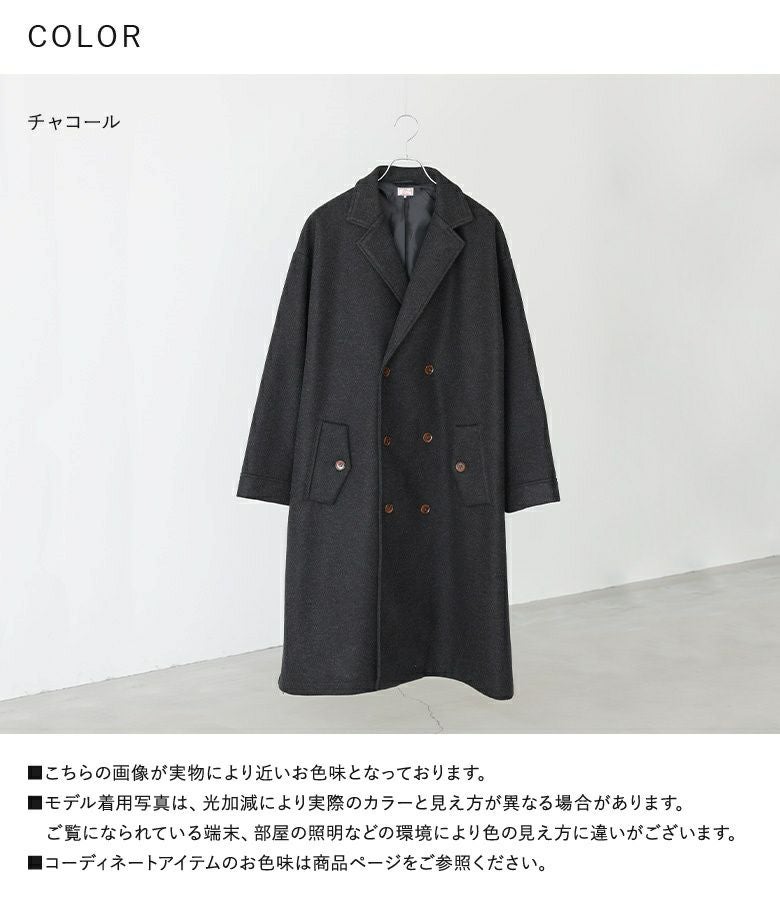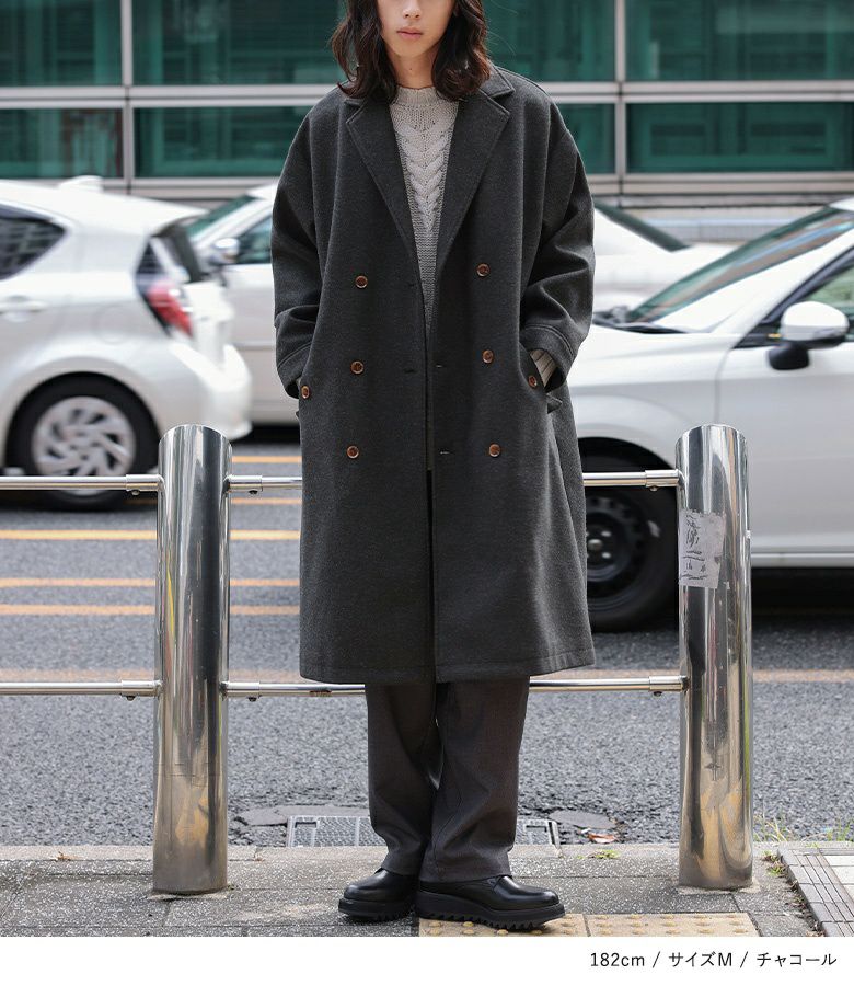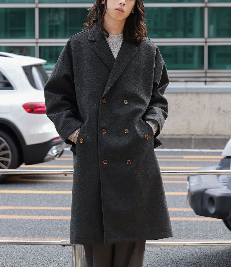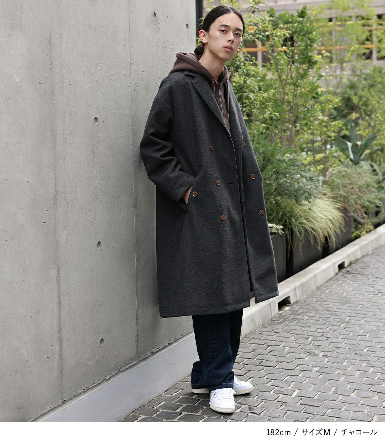 オーバーサイズシルエットのロングチェスターコート。