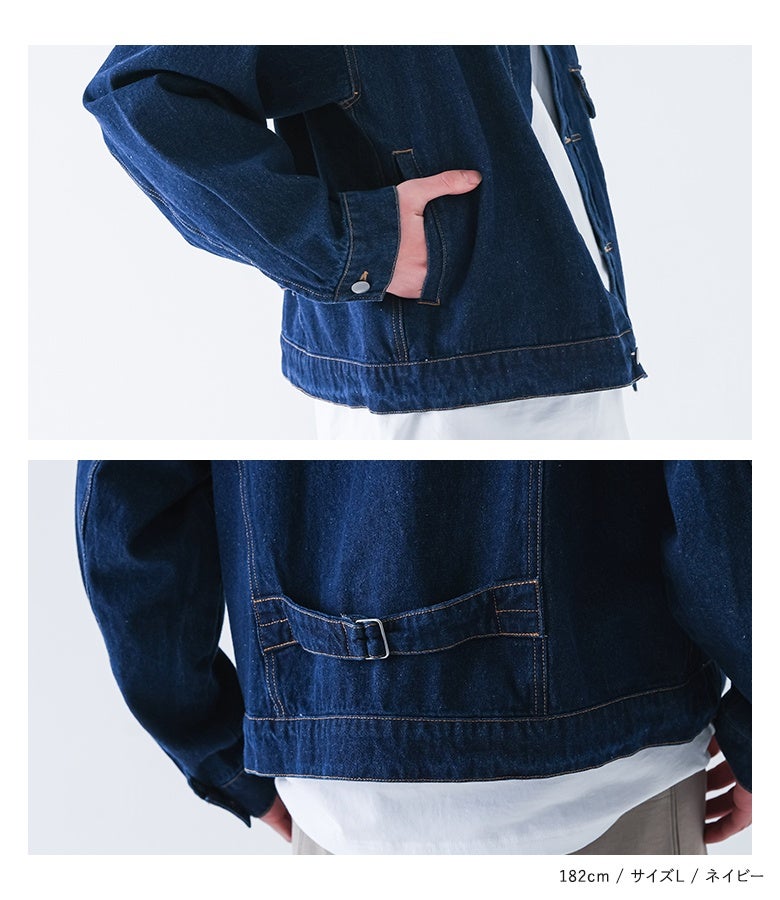 袖丈はボタンを外した状態です。肩幅はジャストサイズで、インナーにシャツを着てジャスト程度の着用感です。