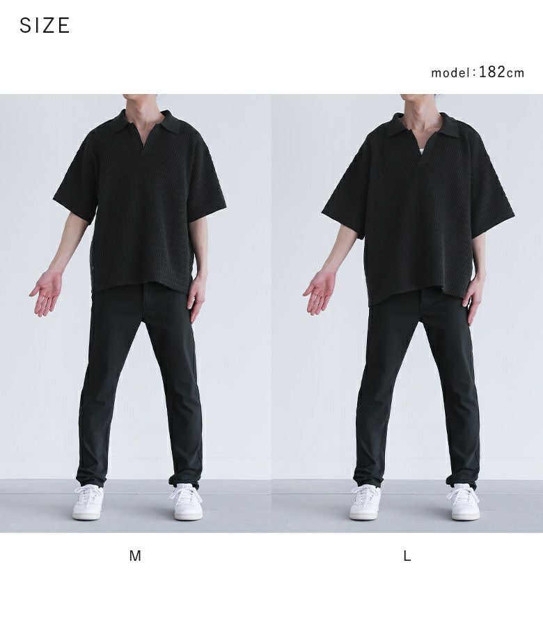【普段着用】 Tops: L Bottoms: L/LL | 【M】 袖丈:ちょうどひじ位 着丈:ヒップにかかる位 腕周り:ややゆったり バスト:ややゆったり 全体:ややゆったり