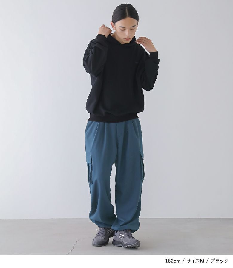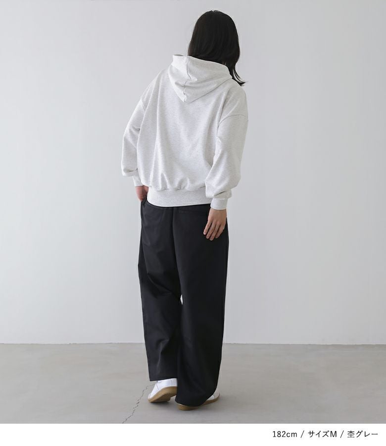 ややオーバーサイズでいい感じに着こなせます。フードも大きめで好みの方にはぴったりです。