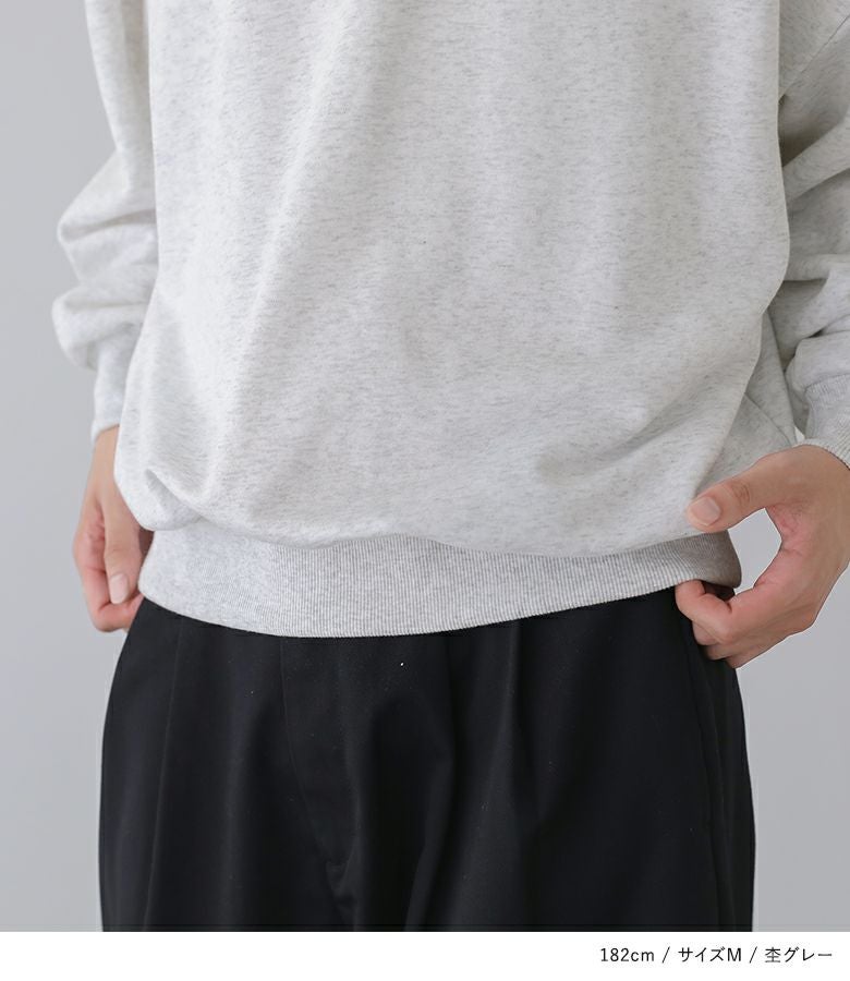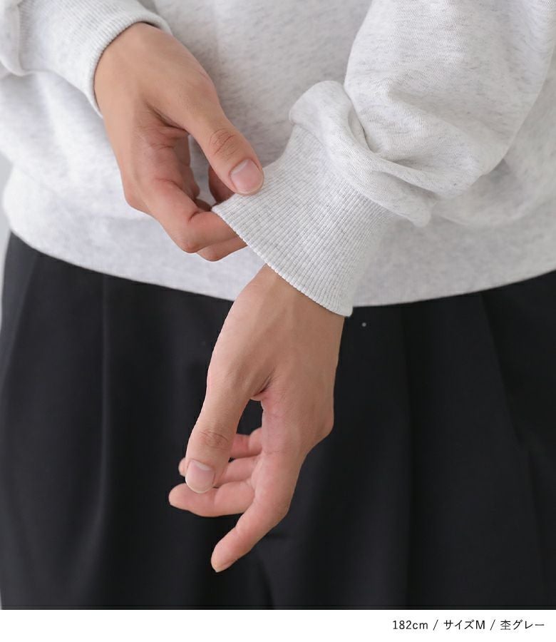 オーバーサイズ気味に着用するならこちらのサイズを選びます。袖はリブのため手首で止まります。