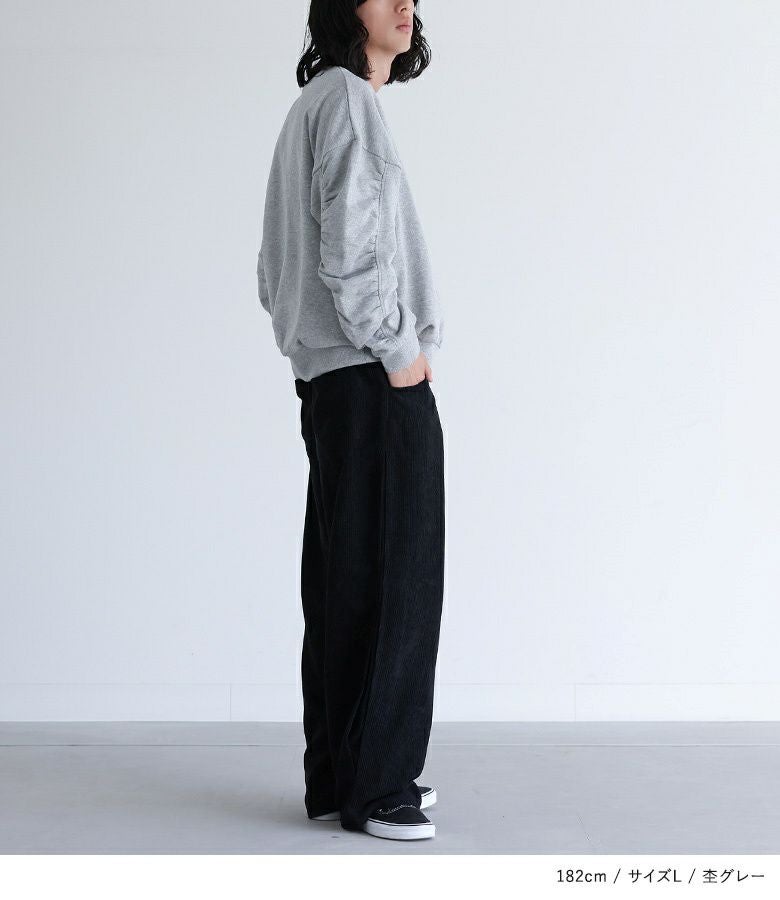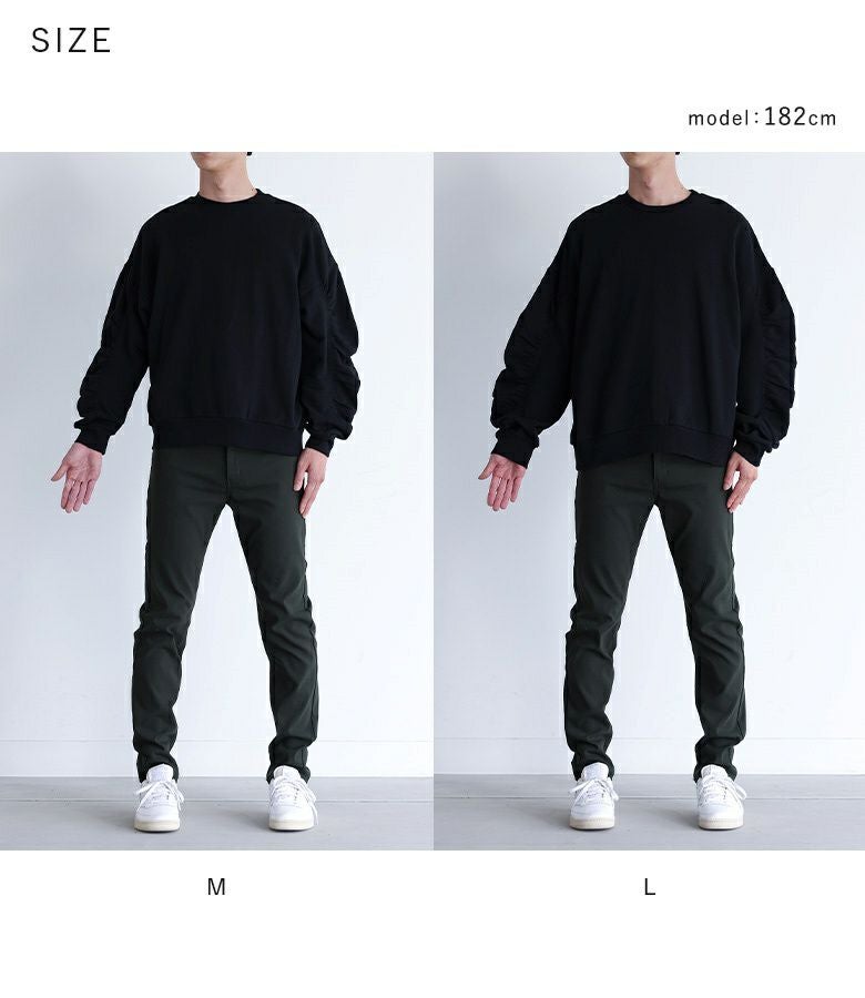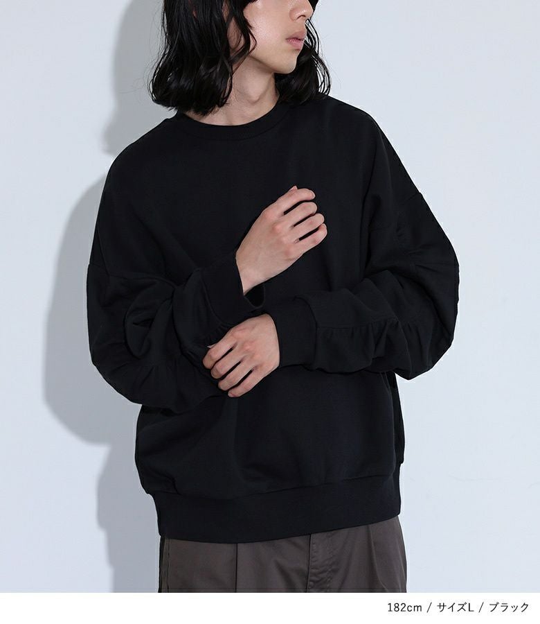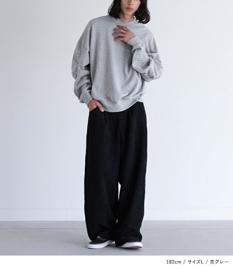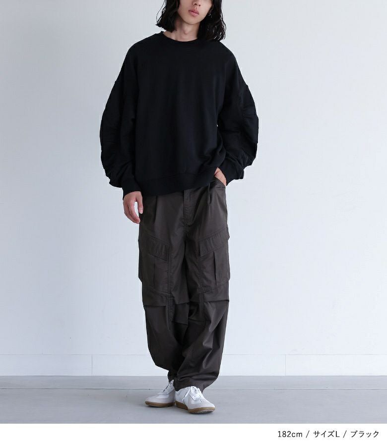 【普段着用】 Tops: L Bottoms: L/LL | 【M】 袖丈:手の甲にかかる位 着丈:ヒップにかかる位 腕周り:ややゆったり バスト:ややゆったり 全体:ややゆったり