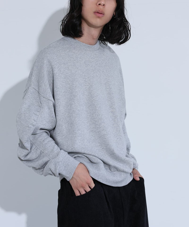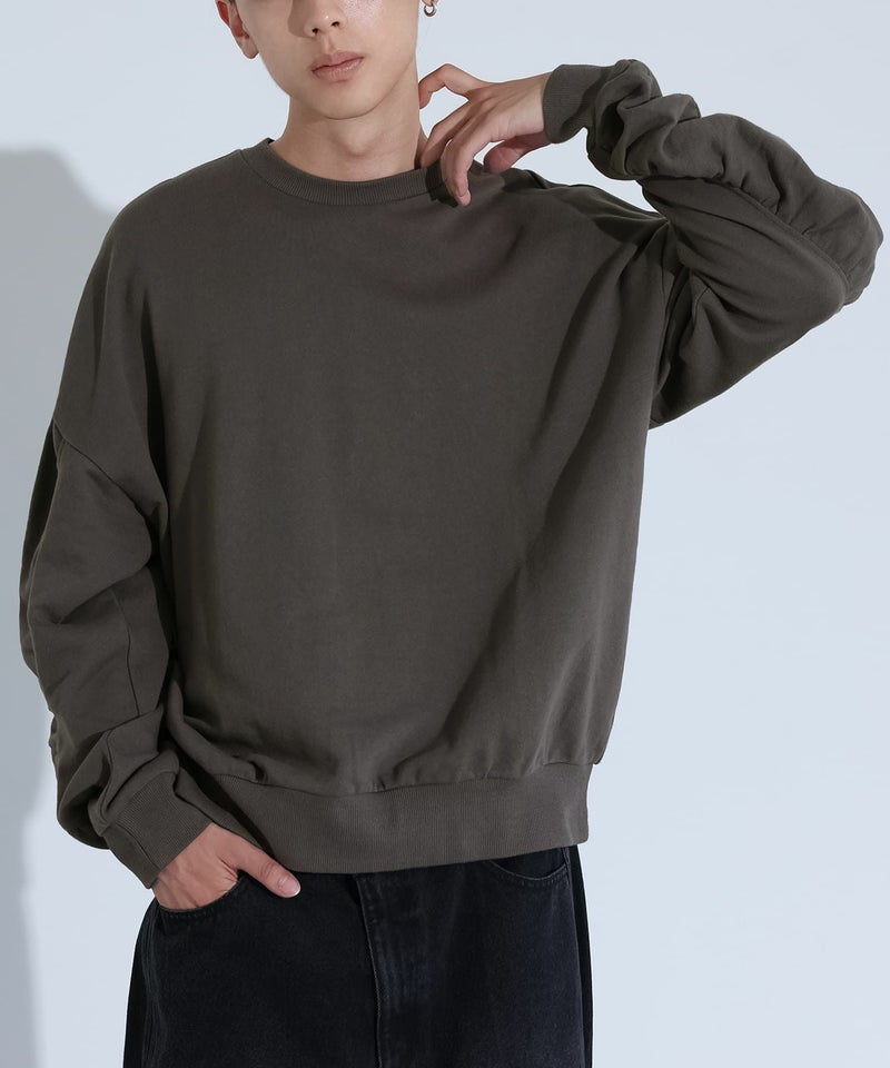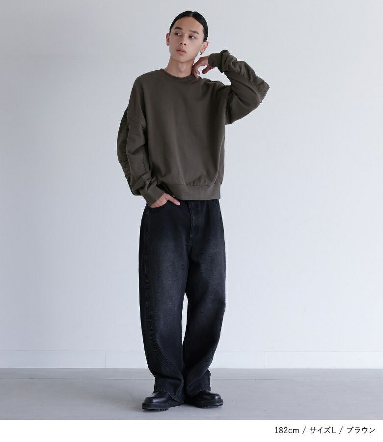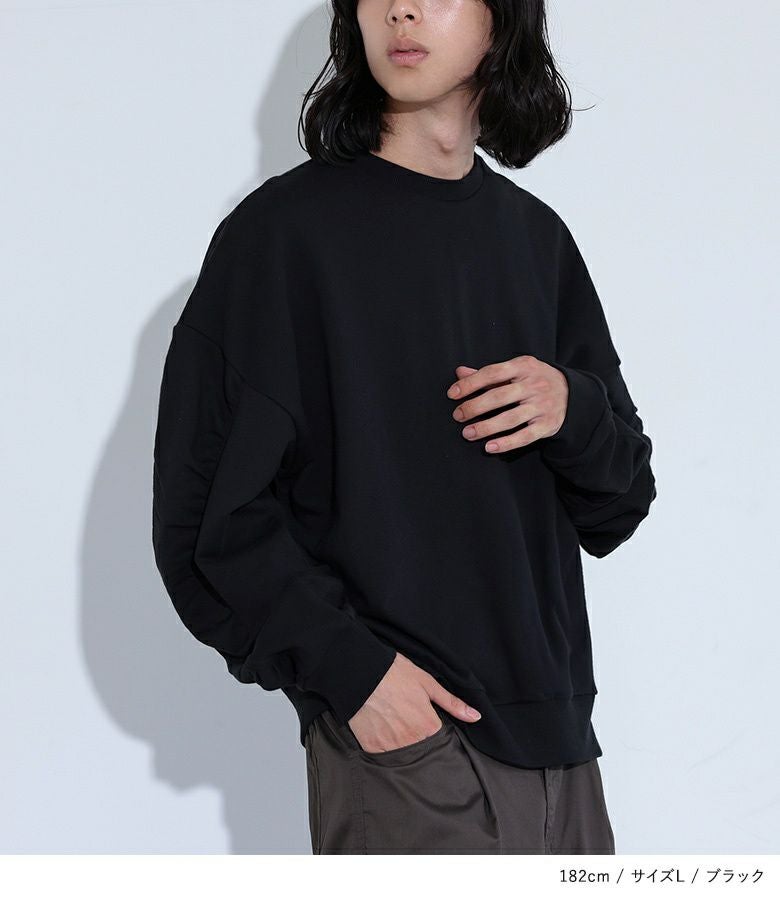 【普段着用】 Tops: L Bottoms: L/LL | 【M】 袖丈:手の甲にかかる位 着丈:ヒップにかかる位 腕周り:ややゆったり バスト:ややゆったり 全体:ややゆったり