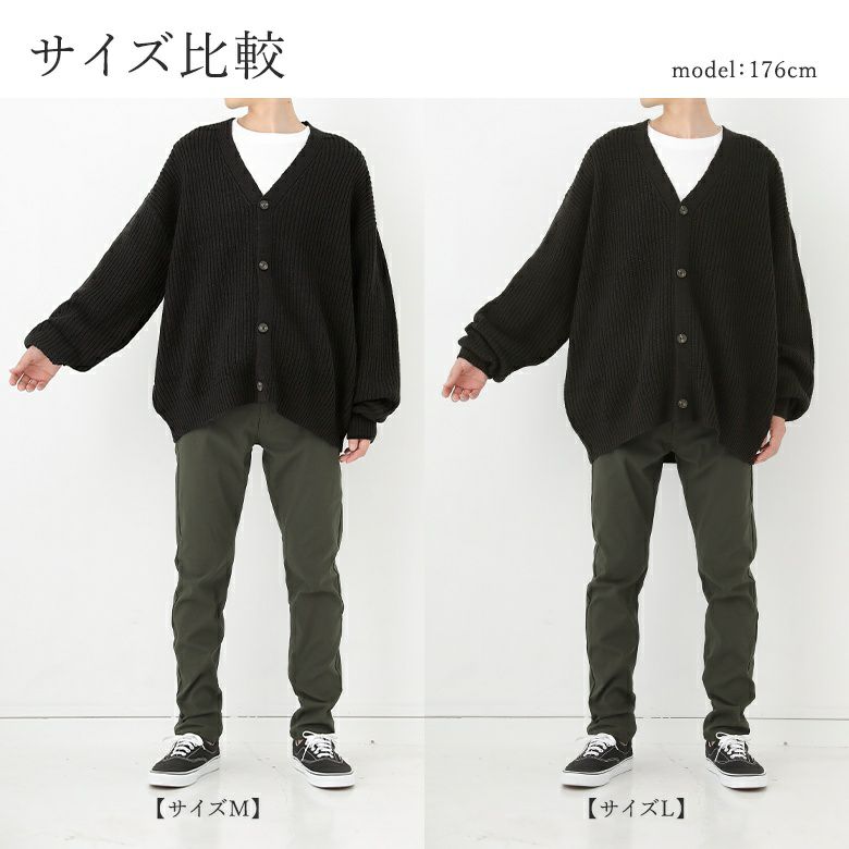 オーバーサイズで着用するならこちらのサイズを選びます。いずれのサイズも袖はリブがあるので手首でとまります。