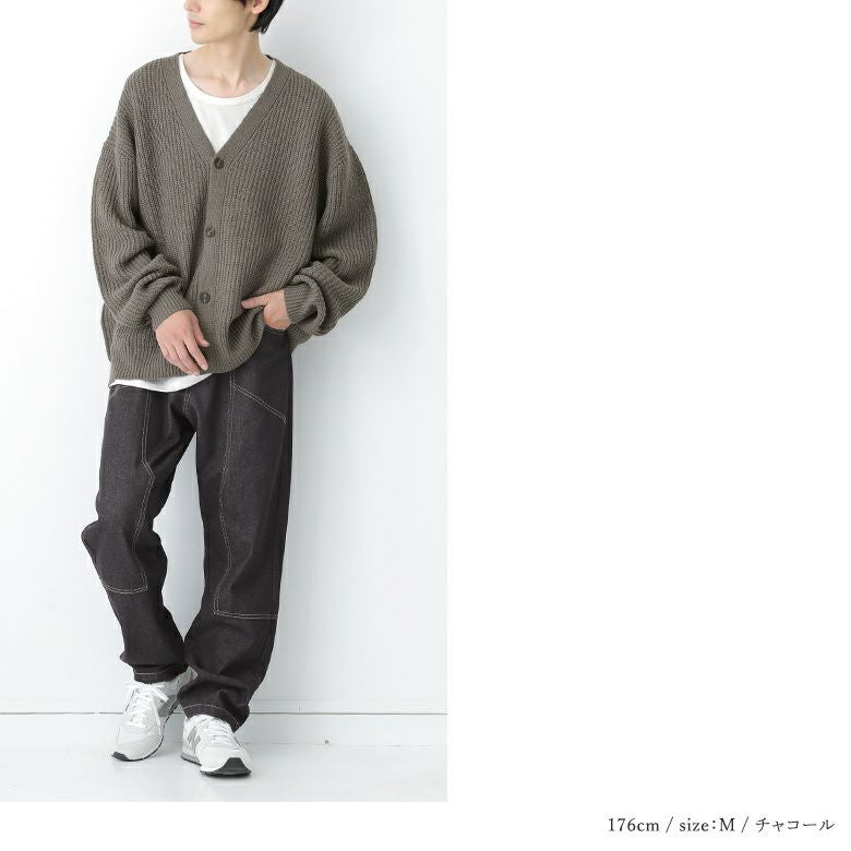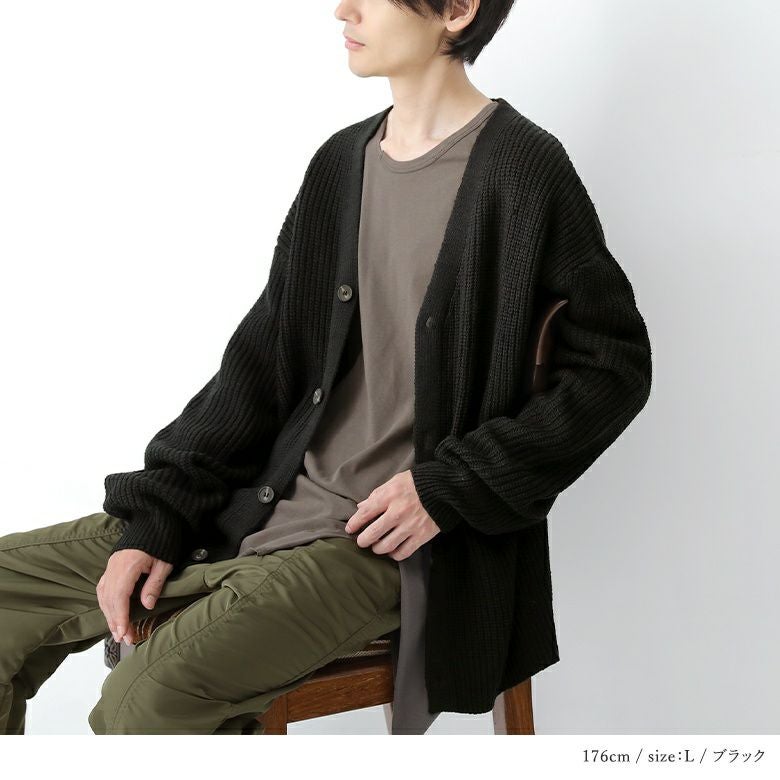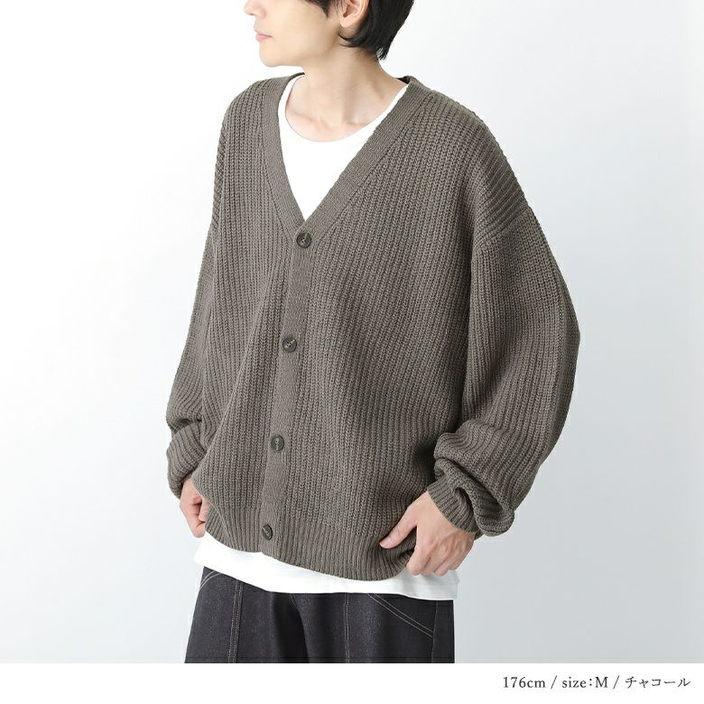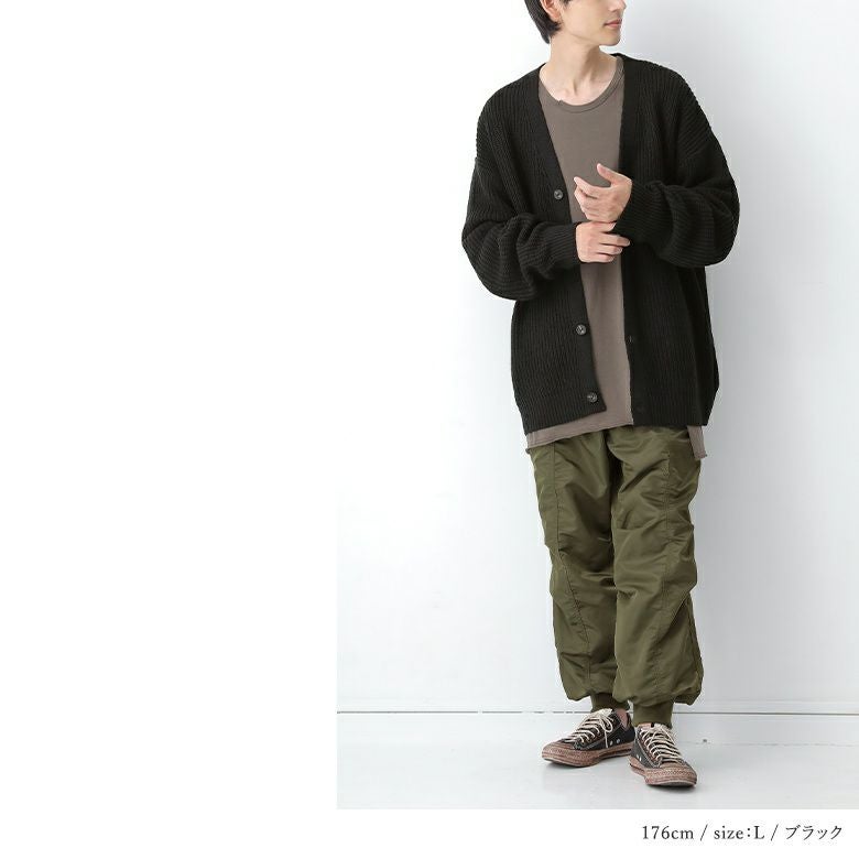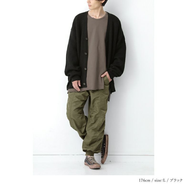 オーバーサイズで着用するならこちらのサイズを選びます。いずれのサイズも袖はリブがあるので手首でとまります。