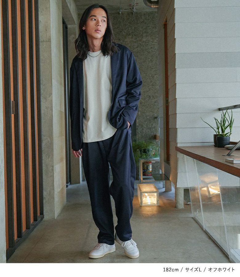 デニムなどのカジュアルなボトムスはもちろん、スラックスなどのきれいめなボトムスと合わせてもバランスの良いスタイリングに。