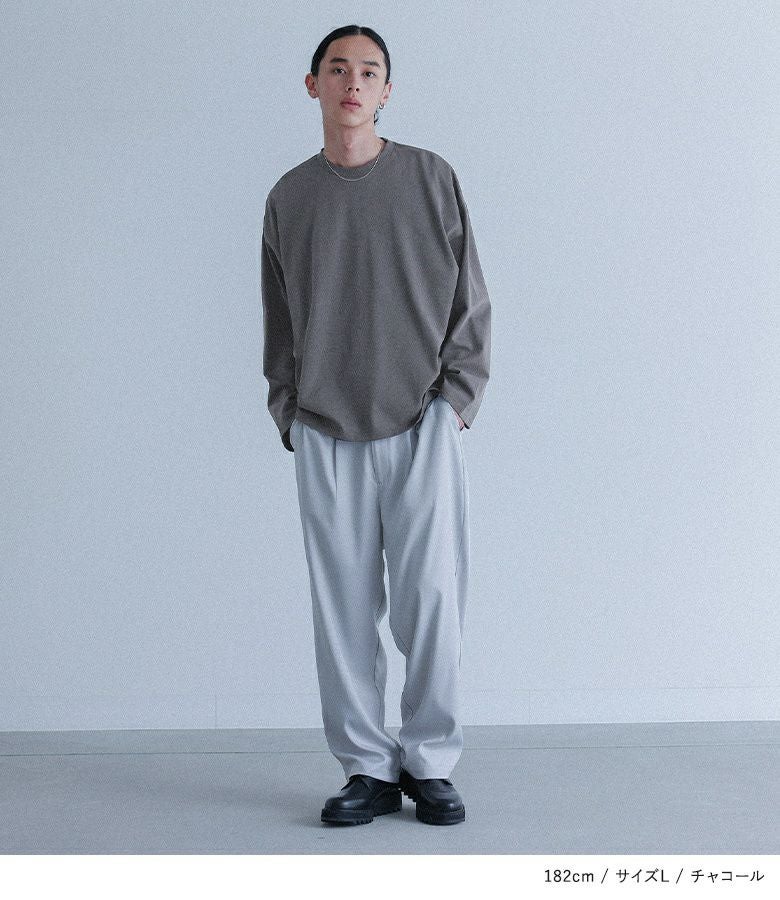 ベーシックに着まわせるシンプルなロンT。ラフに着られるルーズフィットシルエットで羽織のインナーとしても、一枚着としても使えるデザインです。