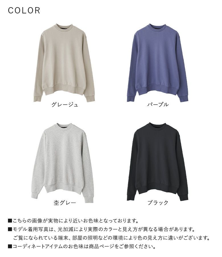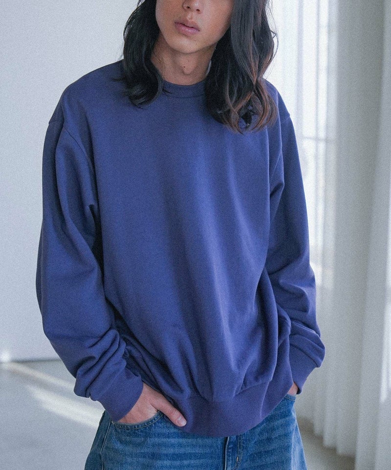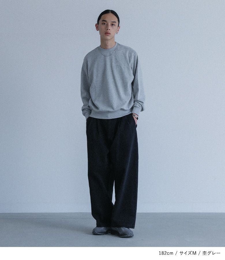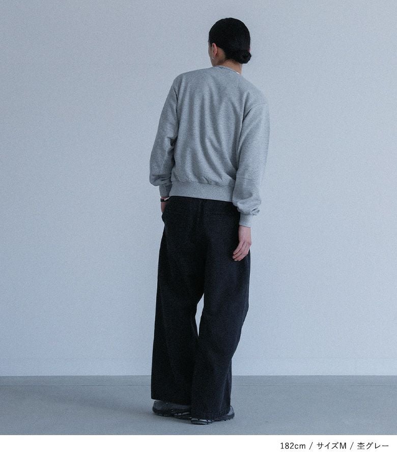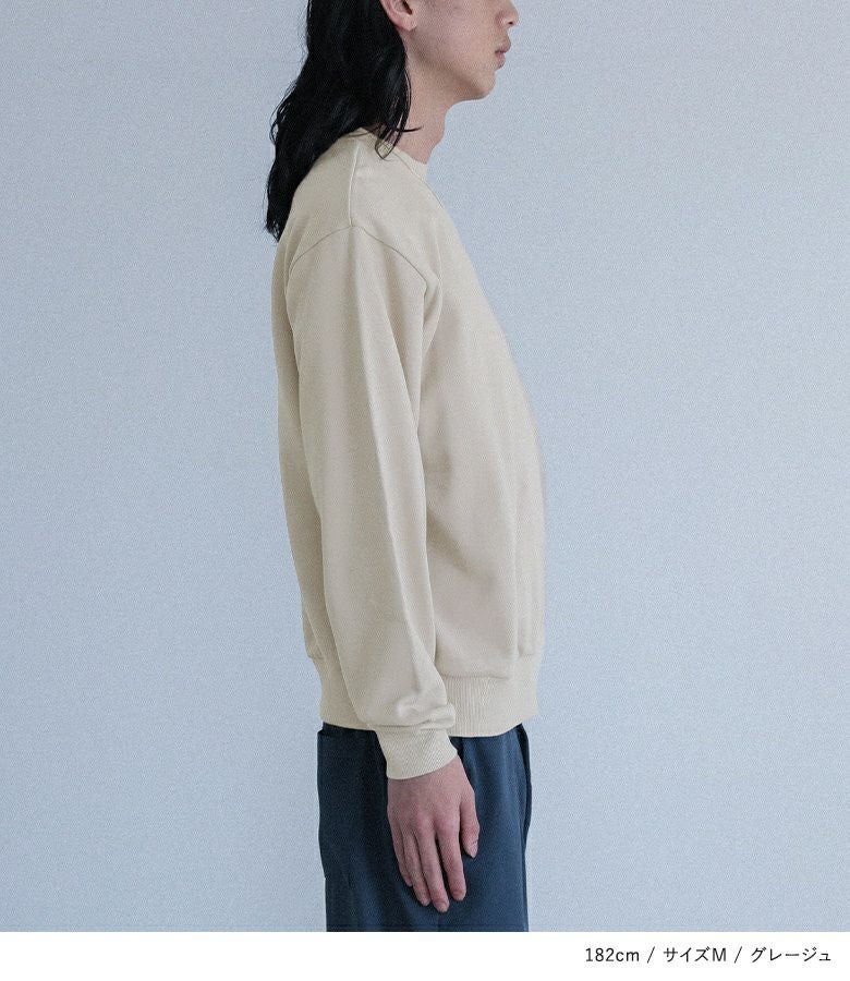 さらりとしたコットン100%の裏毛生地を使用したスウェット。程よく薄手の生地感なので季節の変わり目に最適です。