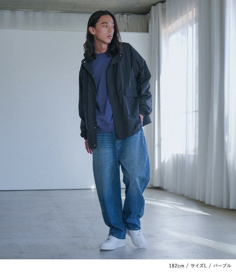 全体的にゆとりをもって着用することができました。袖はリブがあるので手首でとまります。