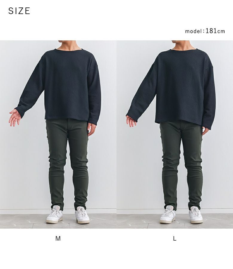 【普段着用】 Tops: L Bottoms: L/LL | 【M】 袖丈:手首位 着丈:ヒップにかかる位 腕周り:ややゆったり バスト:ややゆったり 全体:ややゆったり