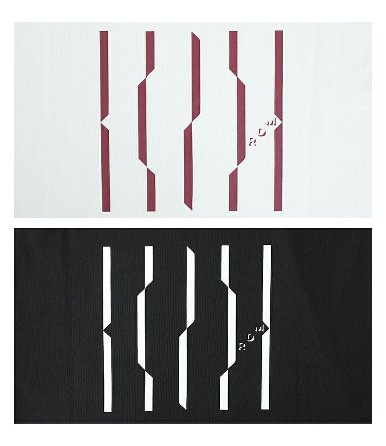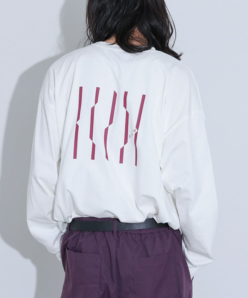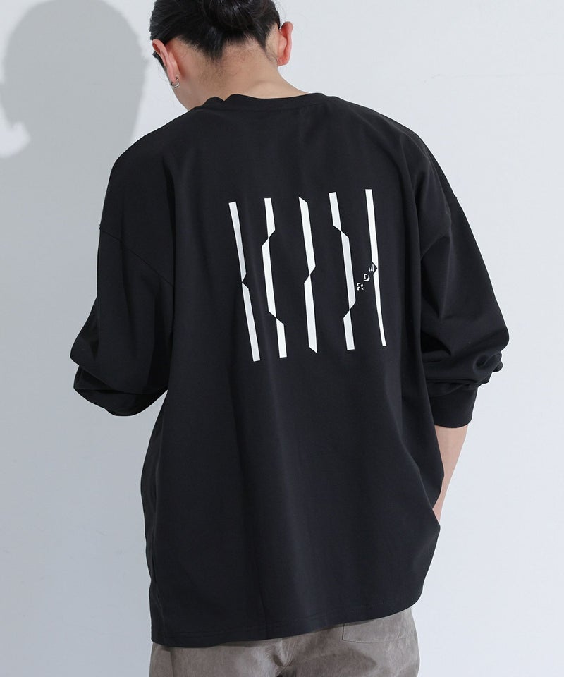 幾何学模様の中にブランドロゴが配された、バックプリントTシャツ。だまし絵のようなトロンプルイユを用いた幾何学模様が、他にはない個性を放ちます。1枚着でもインナーでも活躍する程よくゆとりのあるサイズ感。
