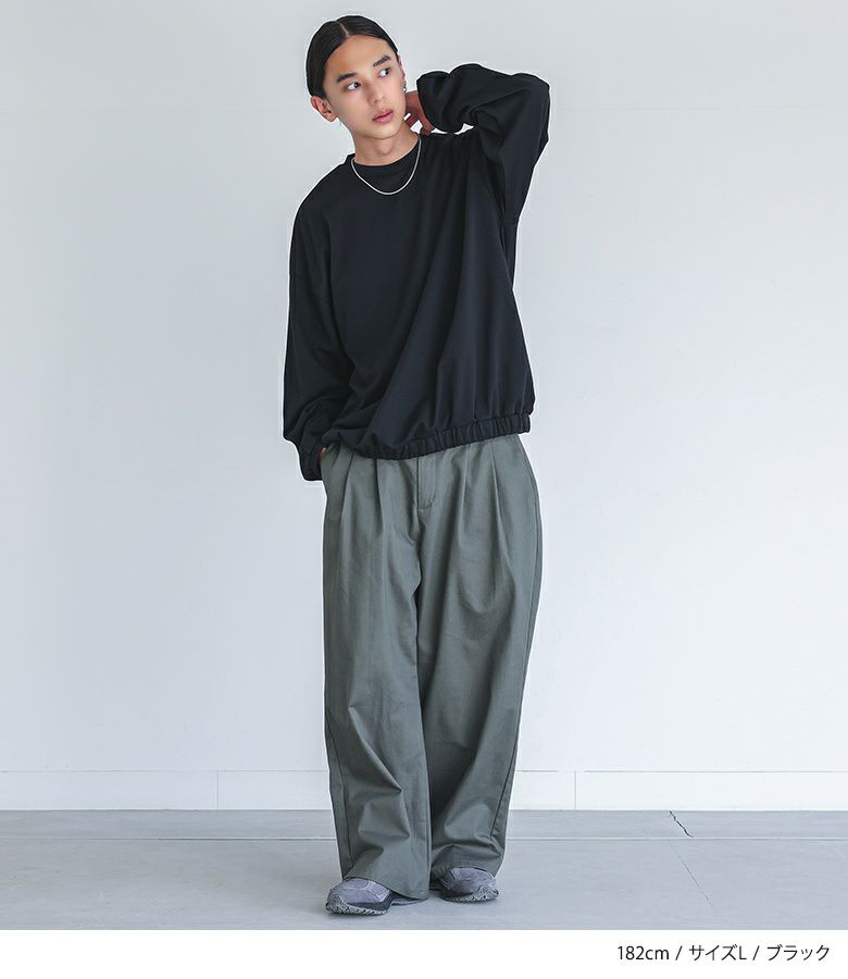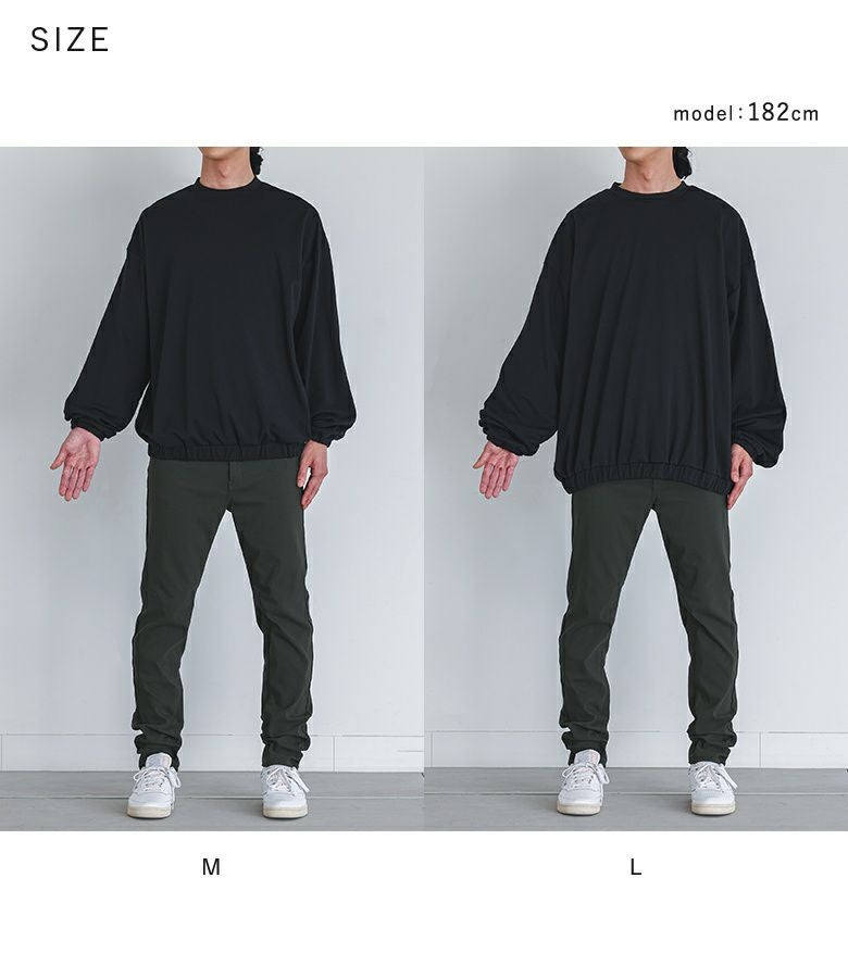 【普段着用】 Tops: L Bottoms: L/LL | 【M】 袖丈:手の甲にかかる位 着丈:ヒップ真ん中より上位 腕周り:ややゆったり バスト:ややゆったり 全体:ややゆったり