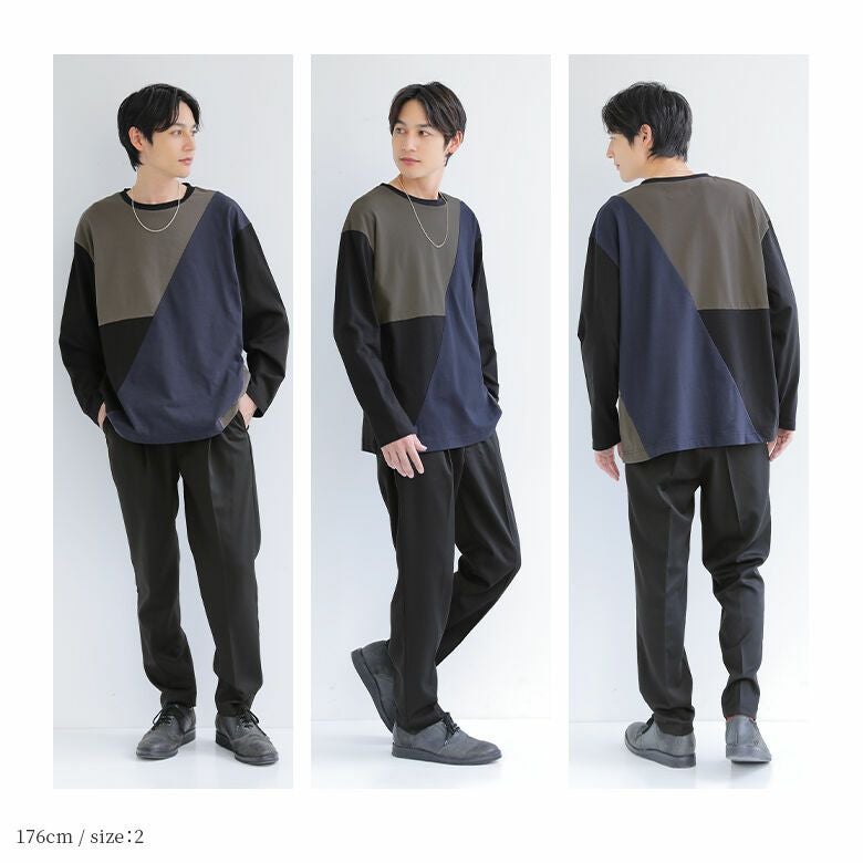 シンプルなデザインだからこそこだわった、配色とアシメ切替ロンT。