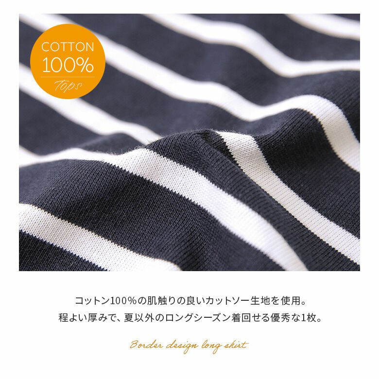 コットン100%の肌触りの良いカットソー生地を使用。1枚でもインナーとしても使える程よい厚みで、ロングシーズン活躍します。