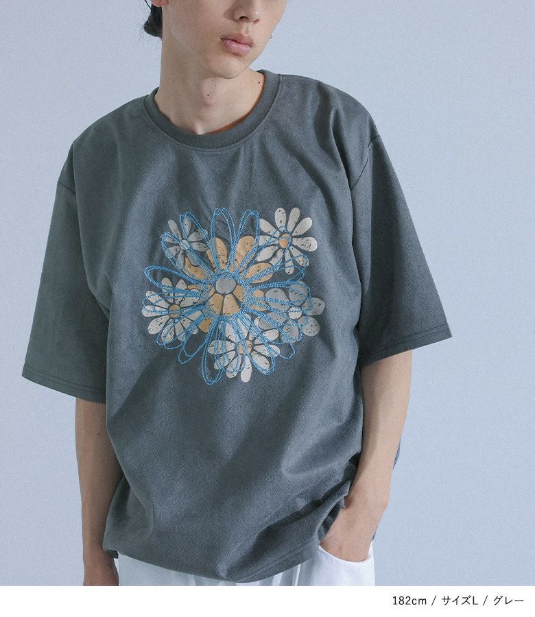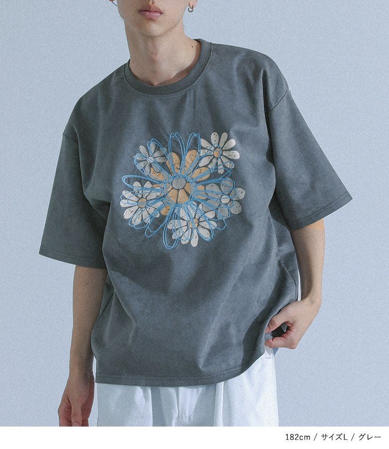 5. 『フラワープリント刺繍Tシャツ』※メール便可※【10】