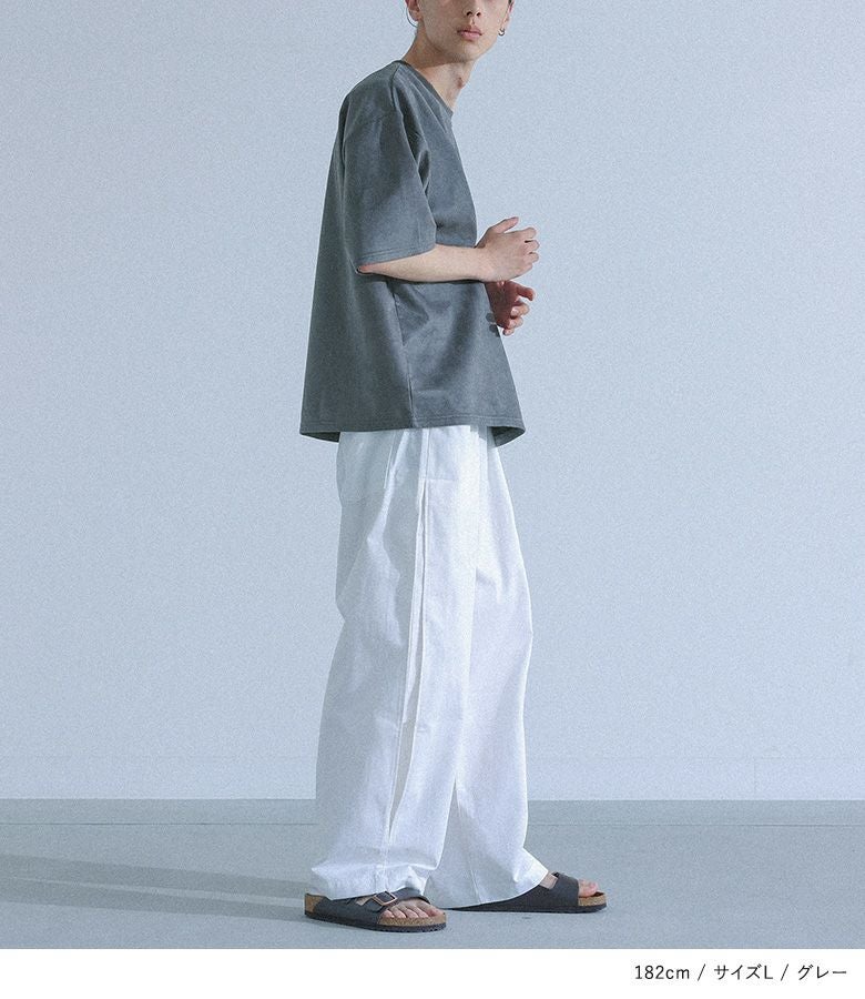 柔らかい肌触りのフェイクスエードの生地を使用。裏面はさらりとした肌当たりなので、暑い季節にも快適な着心地を叶えます。