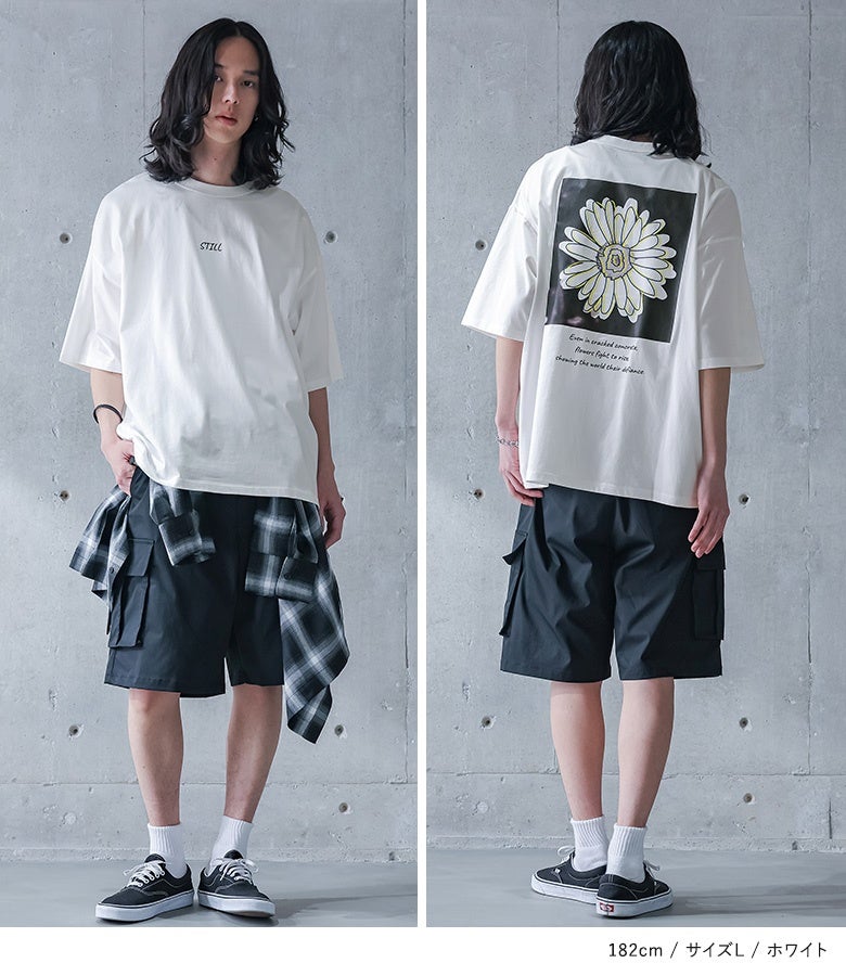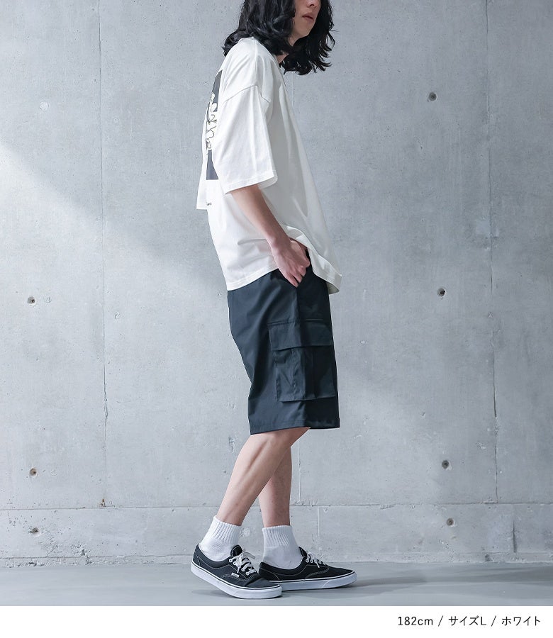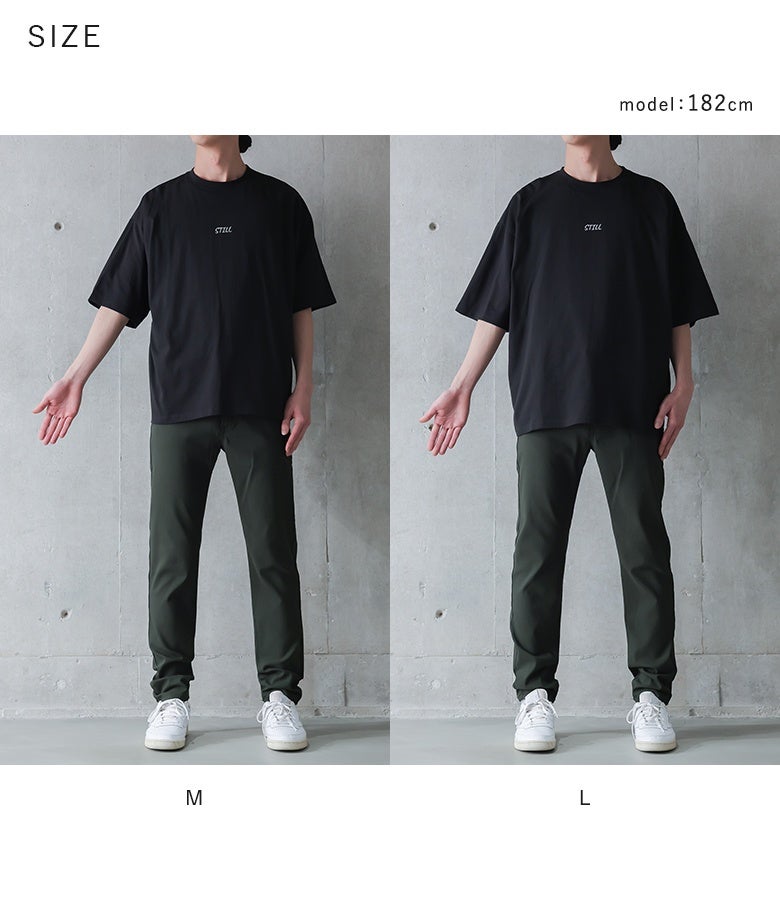 全体的にゆとりがあり、肩が落ちる分袖も長く感じます。よりオーバーサイズで着用したい場合はこちらのサイズを選びます。