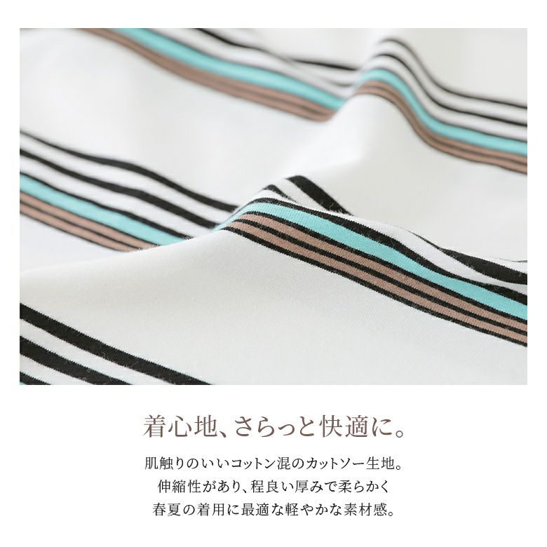 肌触りの良いコットン混のカットソー生地を使用。程よい厚みで柔らかく、伸縮性のある軽やかな素材感が特徴です。