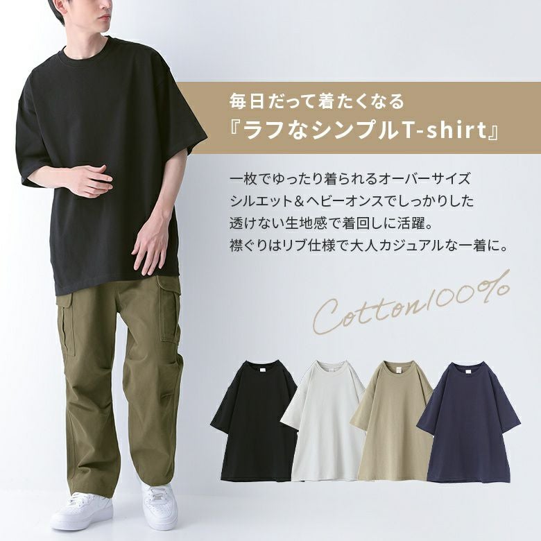 ゆったり着られるオーバーサイズシルエット&一枚で着られるヘビーオンスで着回しに活躍。襟ぐりのリブ仕様が大人カジュアルに決まる、ラフなシンプルTシャツです。