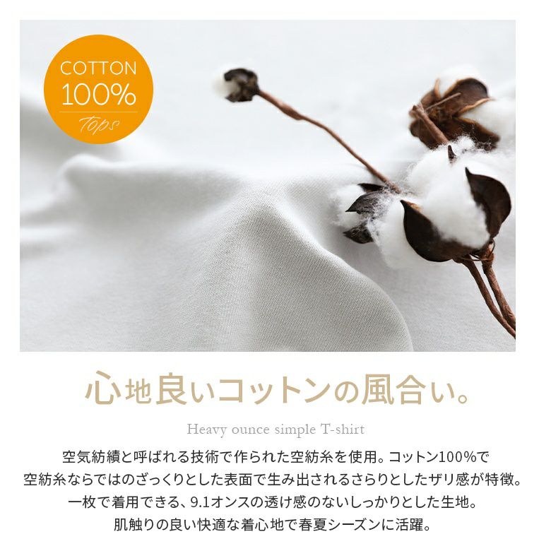 心地よいコットンの風合いが感じられる、ヘビーオンスシンプルTシャツです。