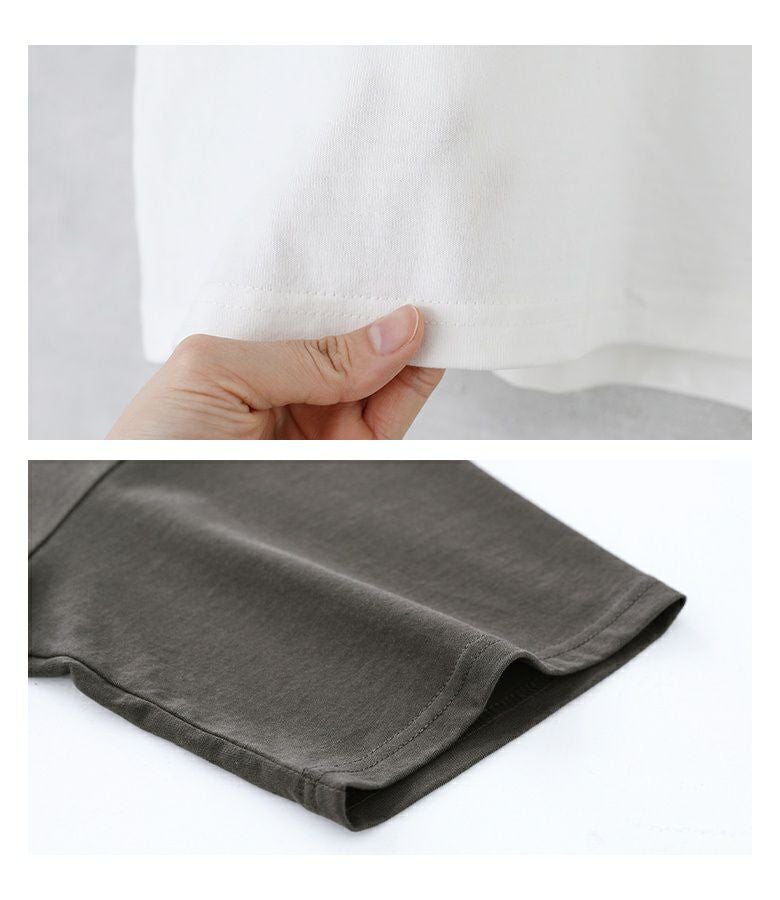 本体生地はコットン100%で、さらりとした肌触りの着心地良いカットソー生地。程よい厚みの生地感で、快適にご着用いただけます。