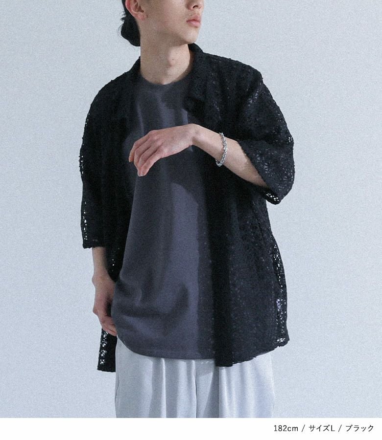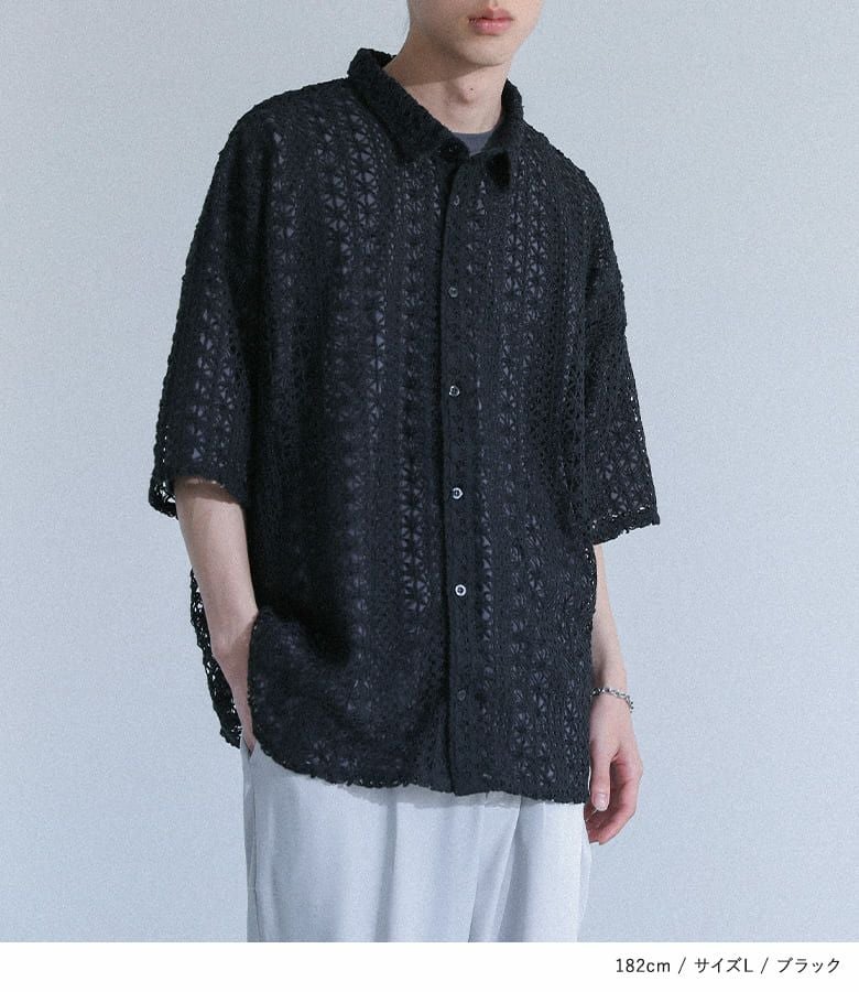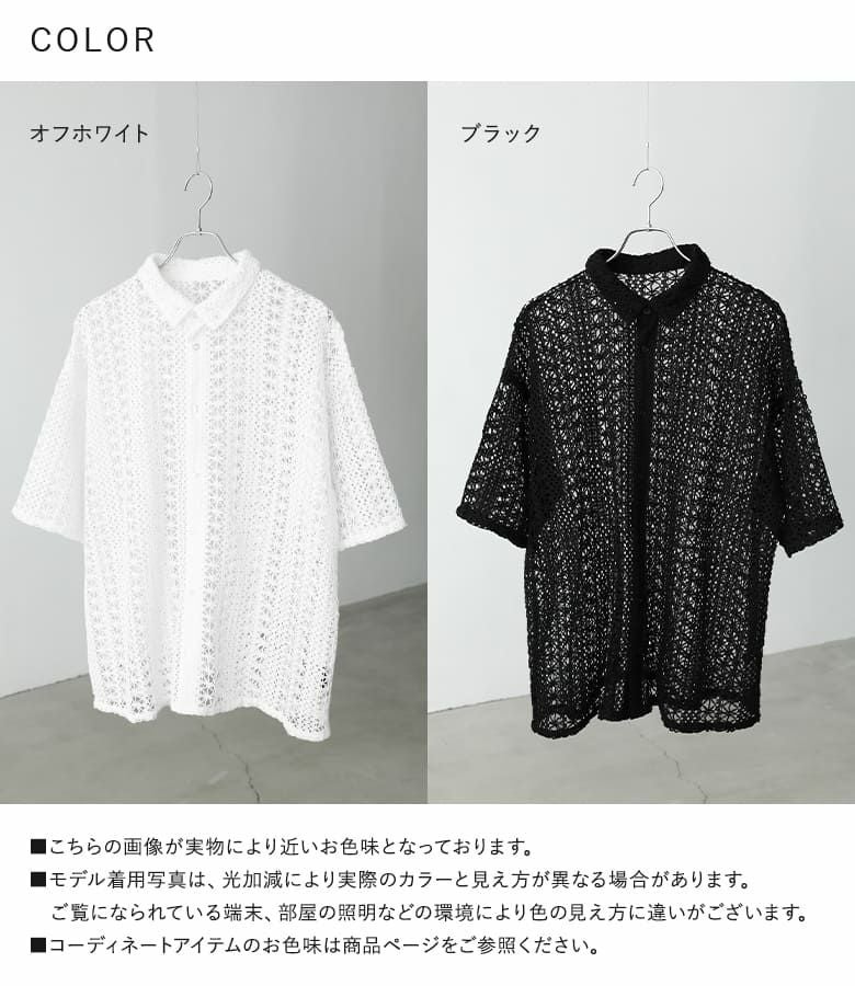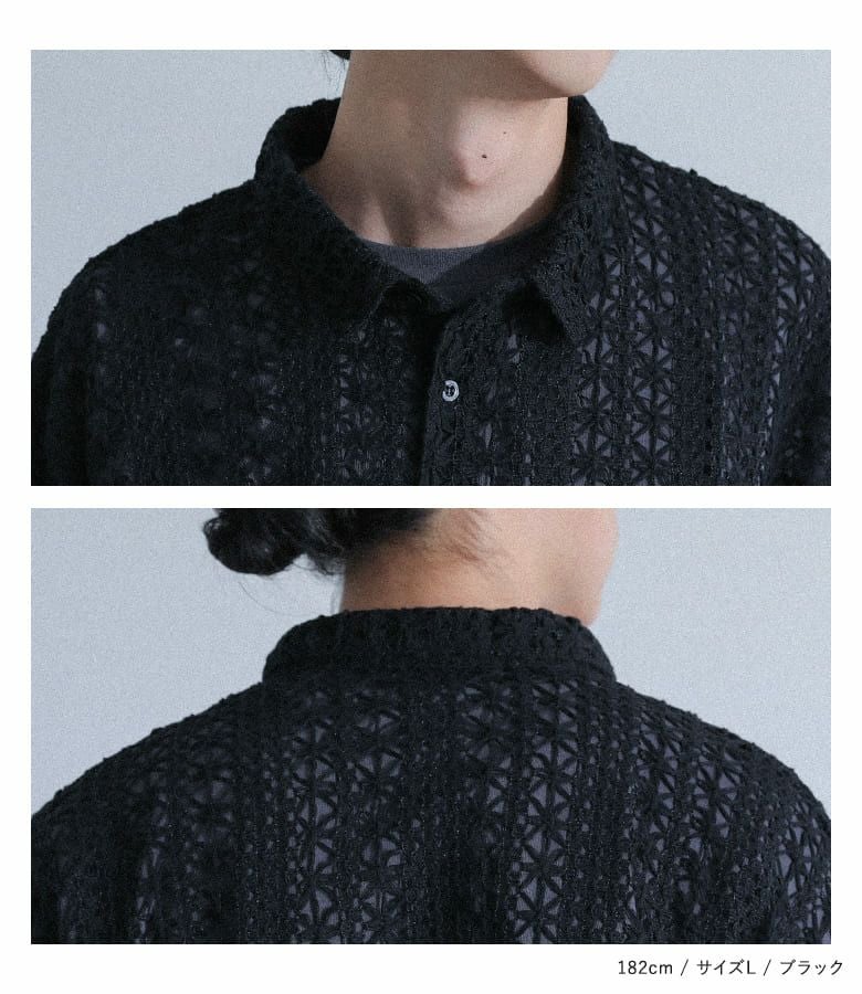 透け感のある柄編み生地を使用した、軽やかな印象のシャツ。前を閉じて一枚で着ても、羽織りとしてラフに羽織ってもサマになるレギュラーカラー仕様で、着回し力も抜群です。存在感のある大きめの柄編みが、シンプルなコーディネートのアクセントに。