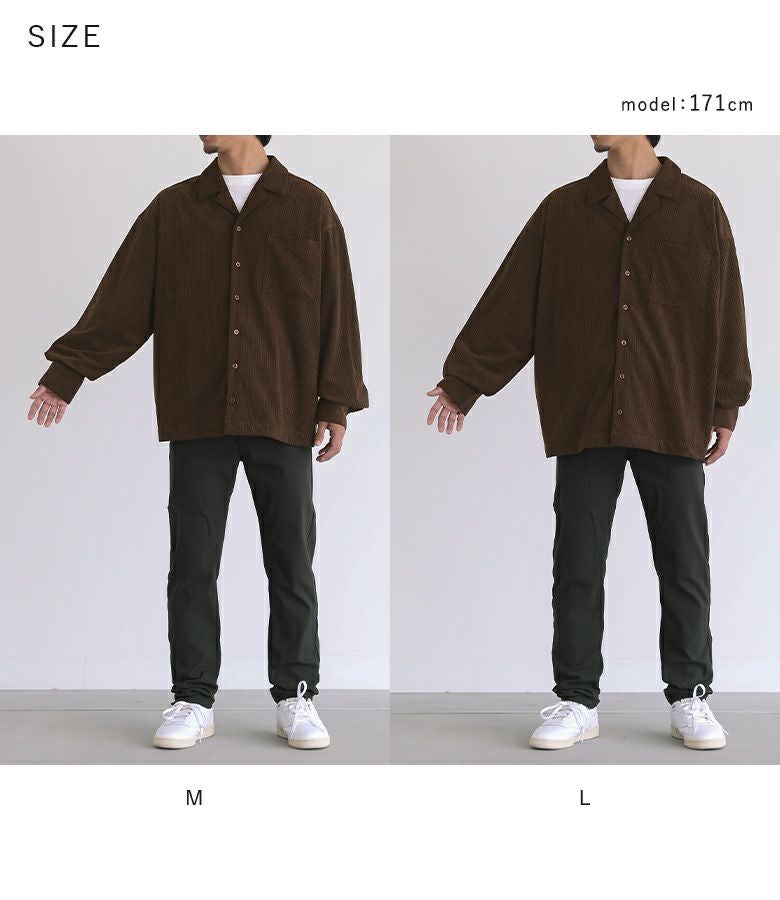 【普段着用】 Tops: L/LL Bottoms: LL | 【M】 袖丈:手の甲にかかる位 着丈:ヒップ上3cm位 腕周り:少しタイト バスト:ジャスト 全体:タイト