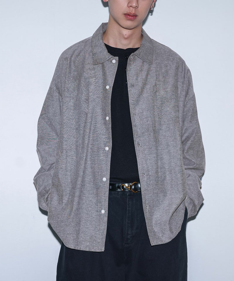 シンプルなデザインのワイドシャツ。ワイドシルエットが特徴で単なるオーバーサイズではなく、計算し尽くされたドロップショルダーとボリューム感で、着るだけでトレンド感のあるシルエットを叶えます。