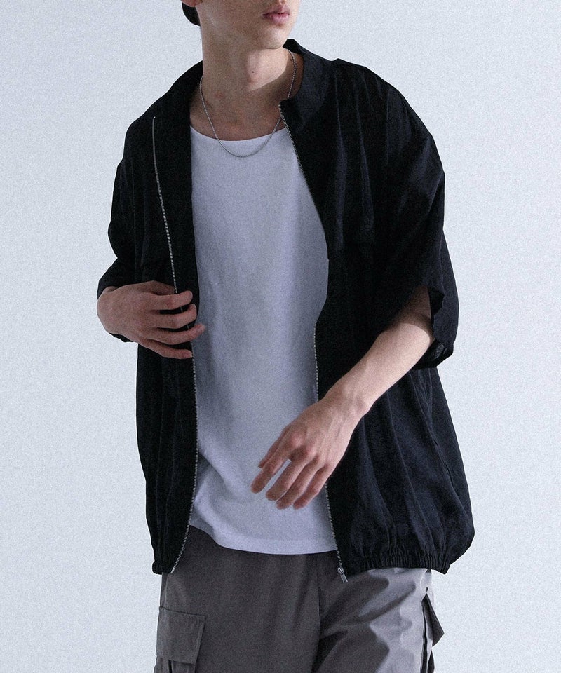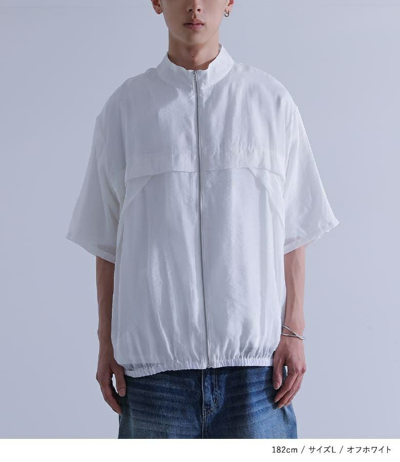 タック切替を施したデザインが特徴のシアートップス。前開きはファスナー仕様で、羽織りとしても着用可能です。スタンドネックがストリートテイストを加え、程よく存在感のあるデザインに。オーバーサイズシルエットで、リラックスした着心地が叶います。