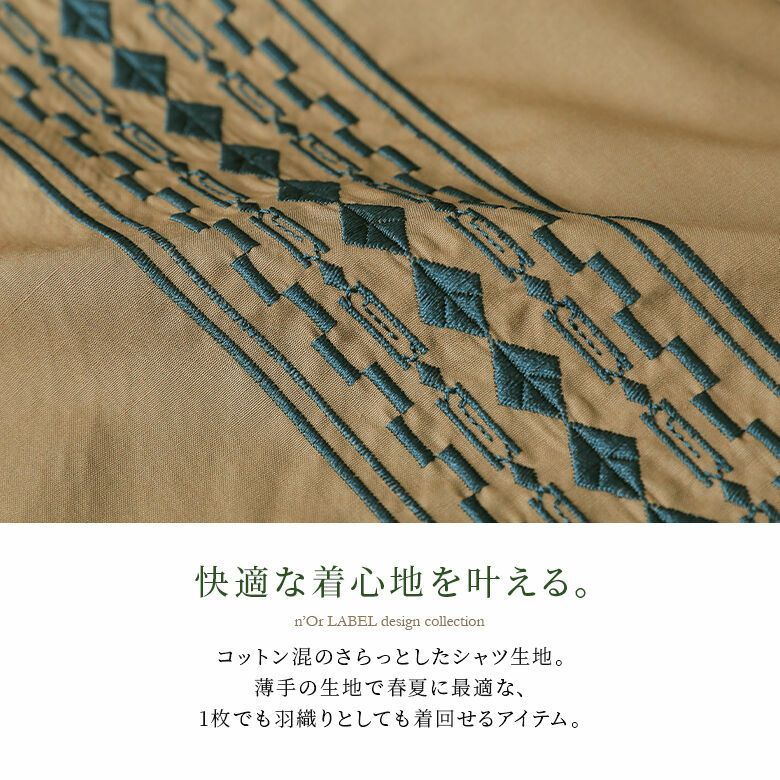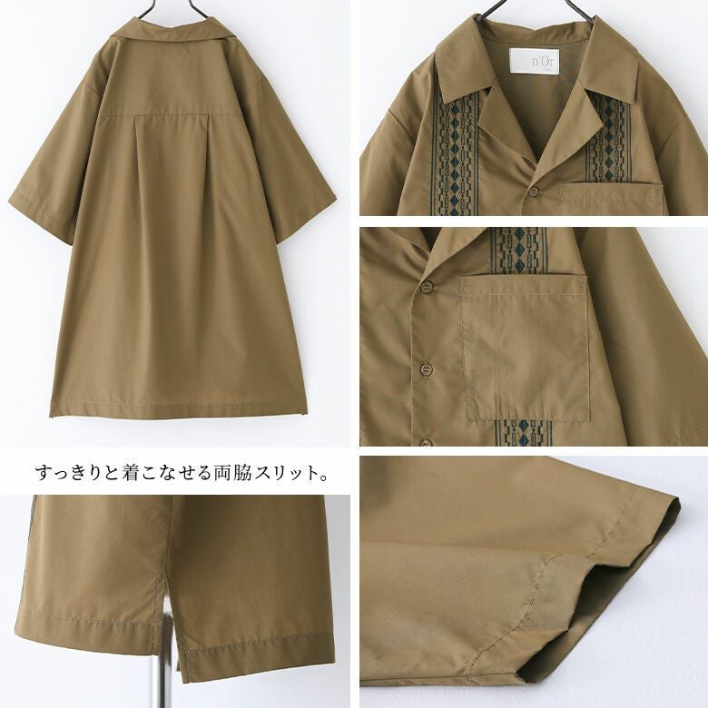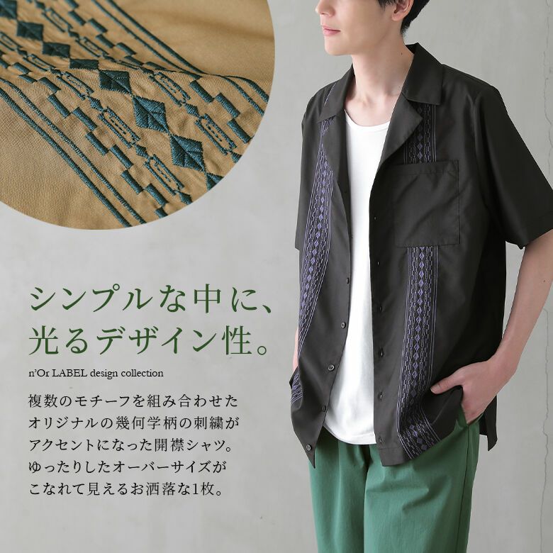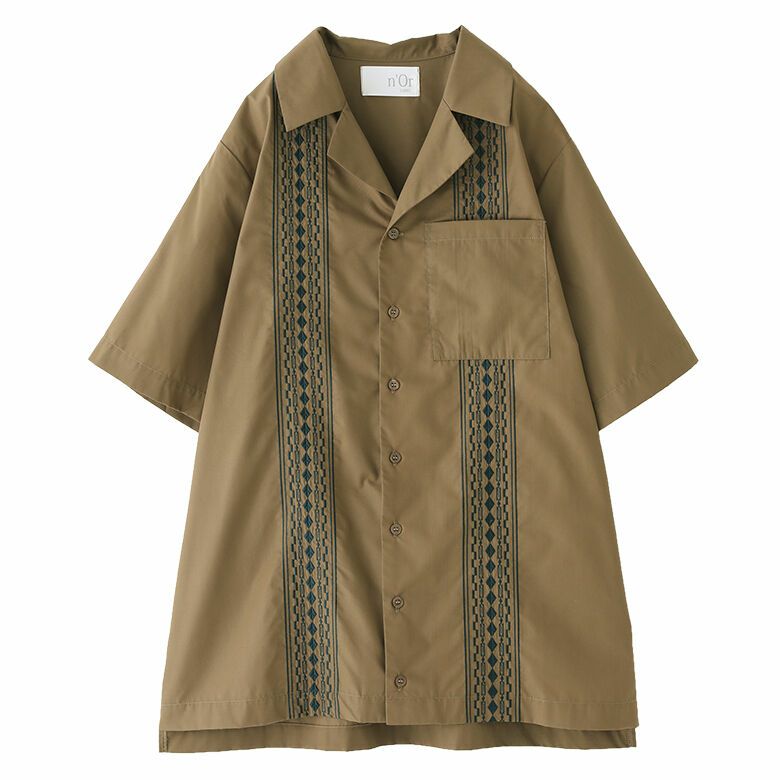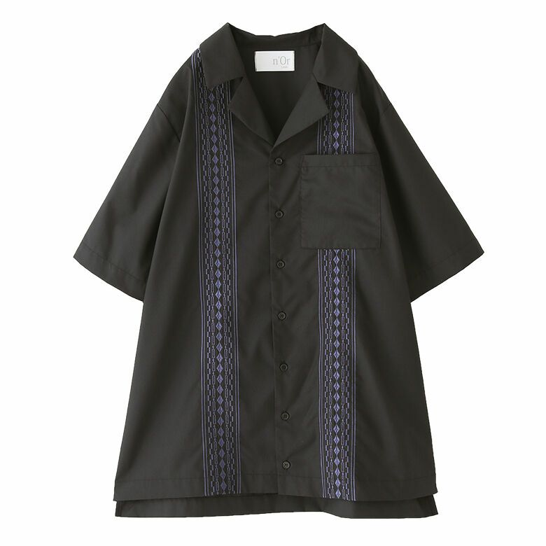 『n'OrLABEL幾何学柄刺繍デザイン開襟シャツ』