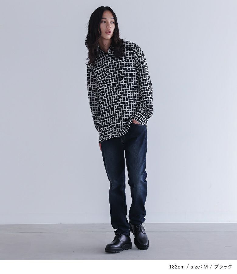 選べる2サイズ展開!着回しやすいモノトーン格子柄シャツ。