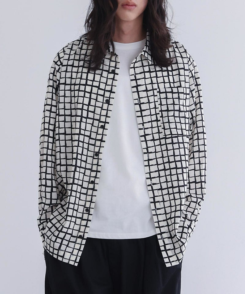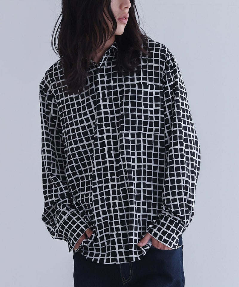 モノトーンの格子柄がお洒落なシャツ。シンプルなデザインで着回しやすく、程良くゆとりのあるシルエットでラフにご着用いただけます。
