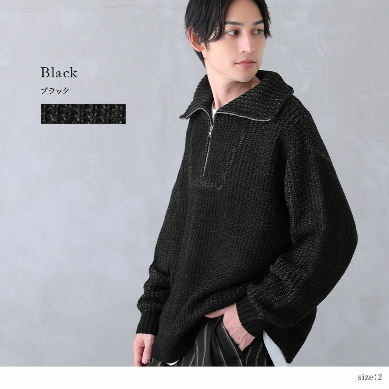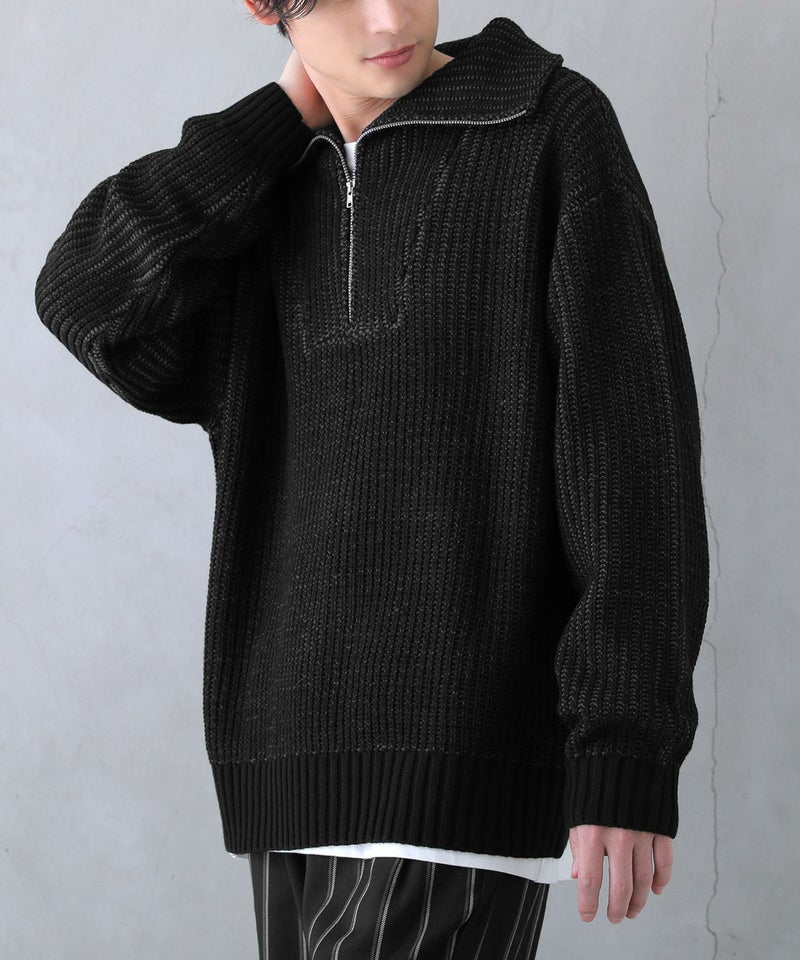 ゆるっとラフに着るだけで、旬な着こなしを叶えるハーフジップニット。