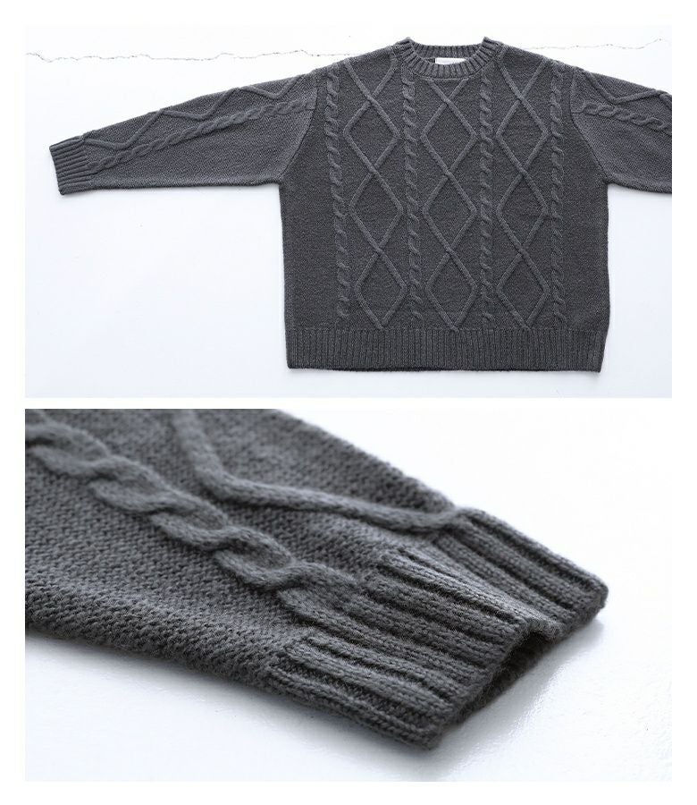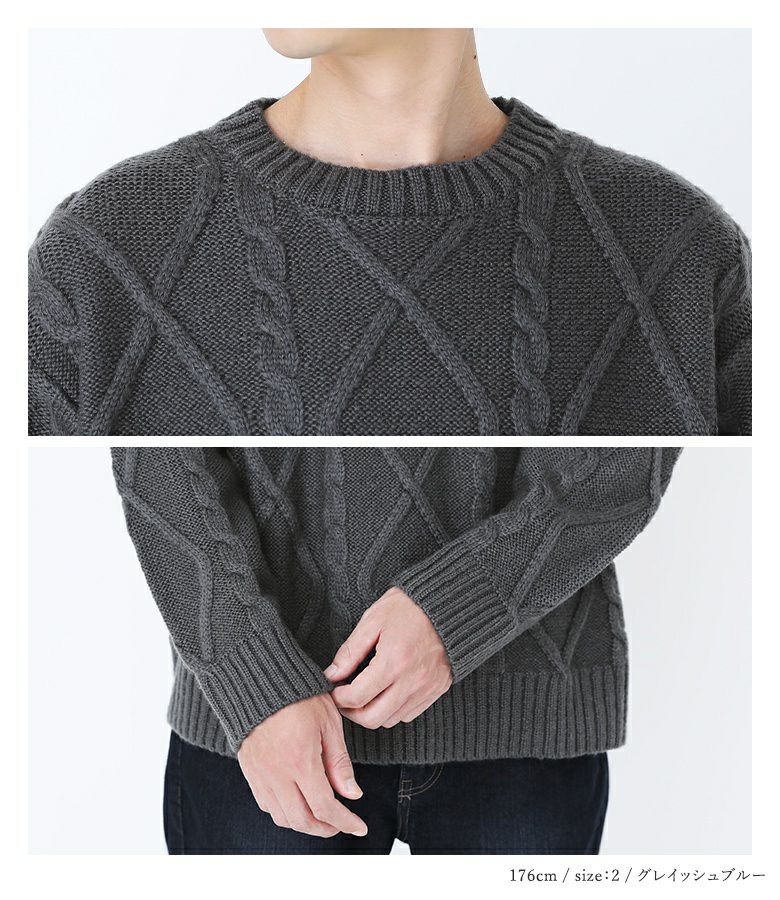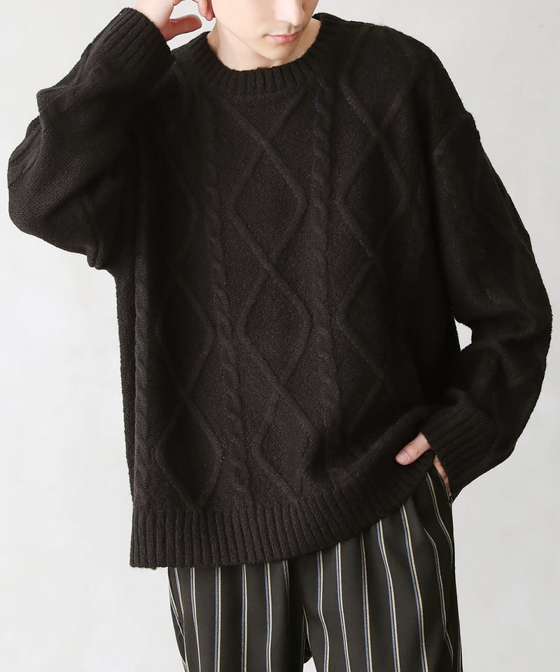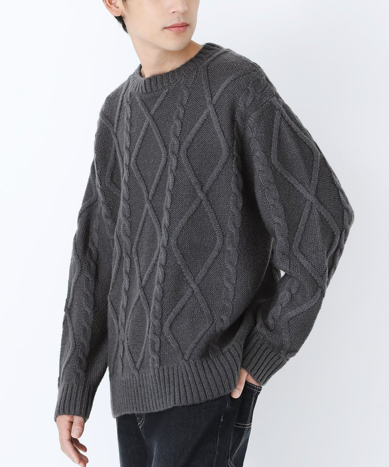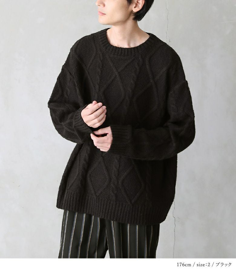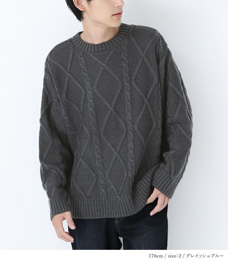 選べる2サイズ展開!ゆったりラフに着まわせるケーブルニット。