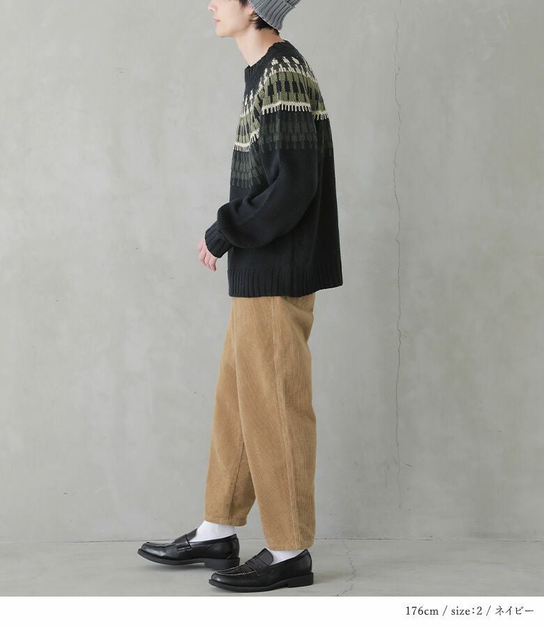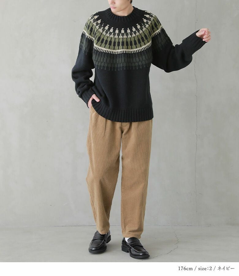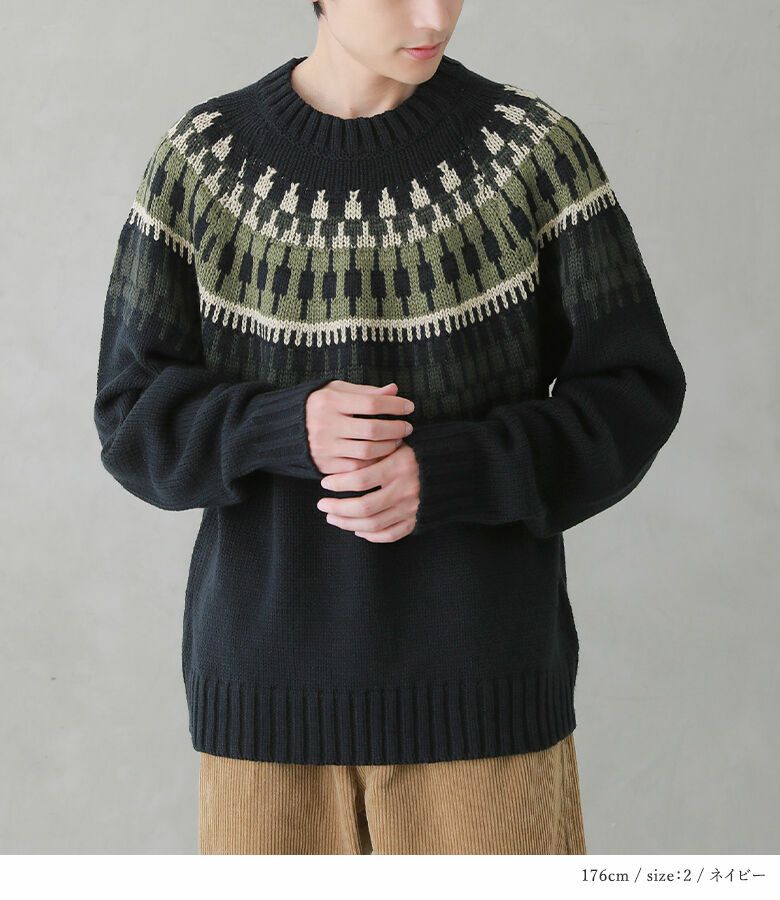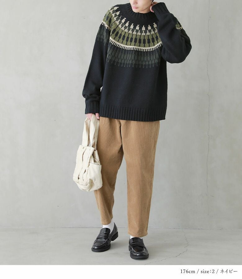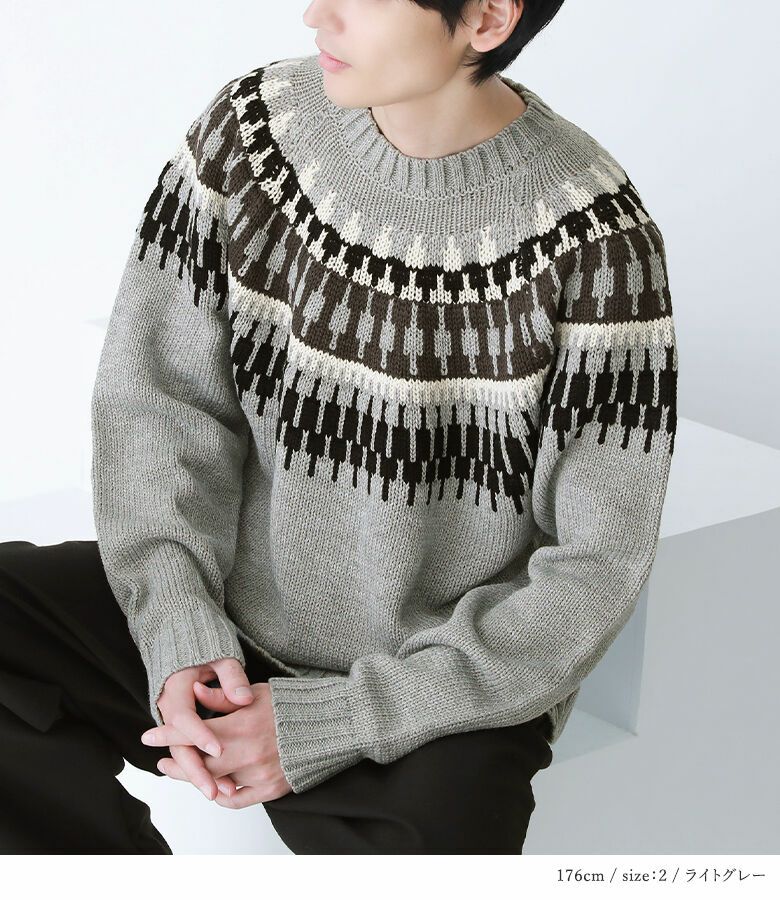 選べるサイズ展開!1枚で着映えするノルディック柄ニット。