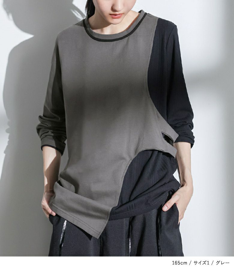 選べる2サイズ展開!異素材をアシンメトリーに組み合わせたカットソー。
