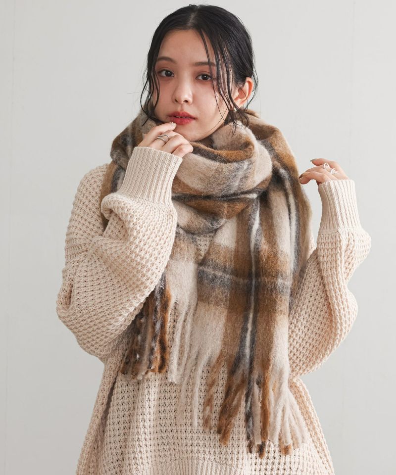 ふわふわとぬくもりを感じる柔らかさのマドラスチェックマフラー。