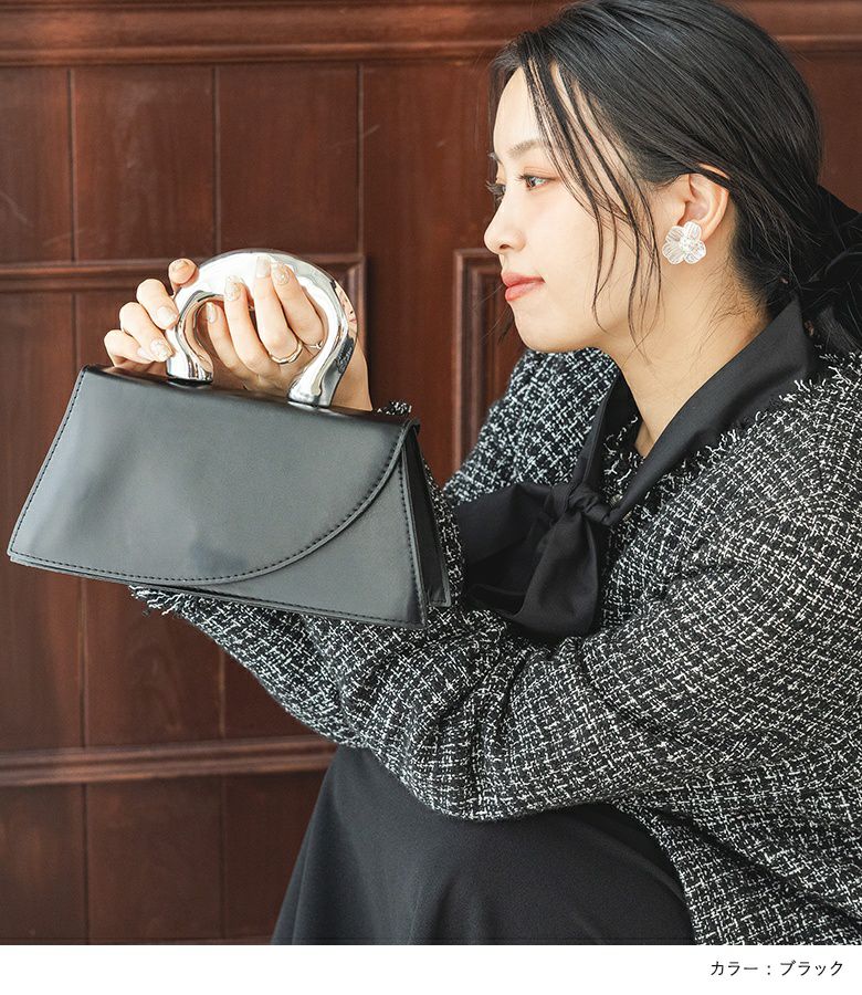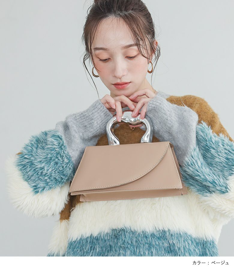 取っ手のモチーフが印象的なデザインバッグ。