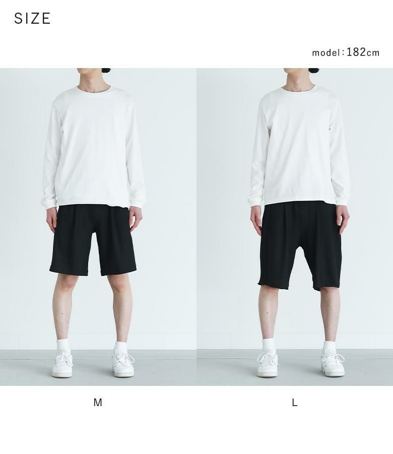 【普段着用】 Tops: L Bottoms: L/LL | 【M】 着丈(ウエスト穿き):ちょうどひざ位 ウエスト:ややゆったり ヒップ:ややゆったり 太もも周り:ややゆったり 全体:ややゆったり