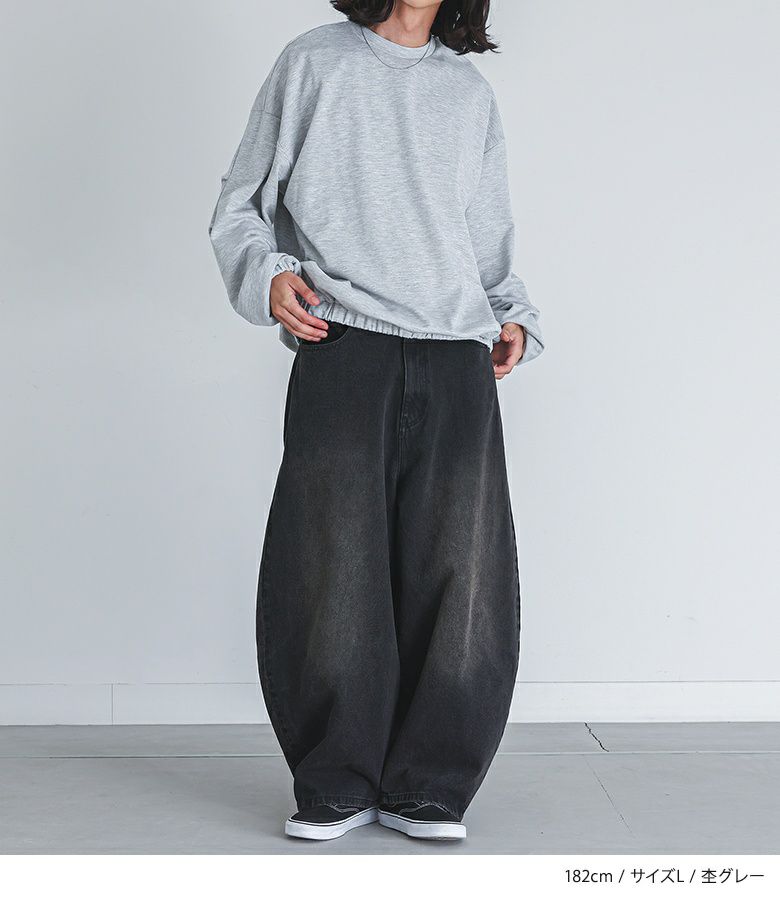 【普段着用】 Tops: L Bottoms: L/LL | 【M】 袖丈:手の甲にかかる位 着丈:ヒップ真ん中より上位 腕周り:ややゆったり バスト:ややゆったり 全体:ややゆったり